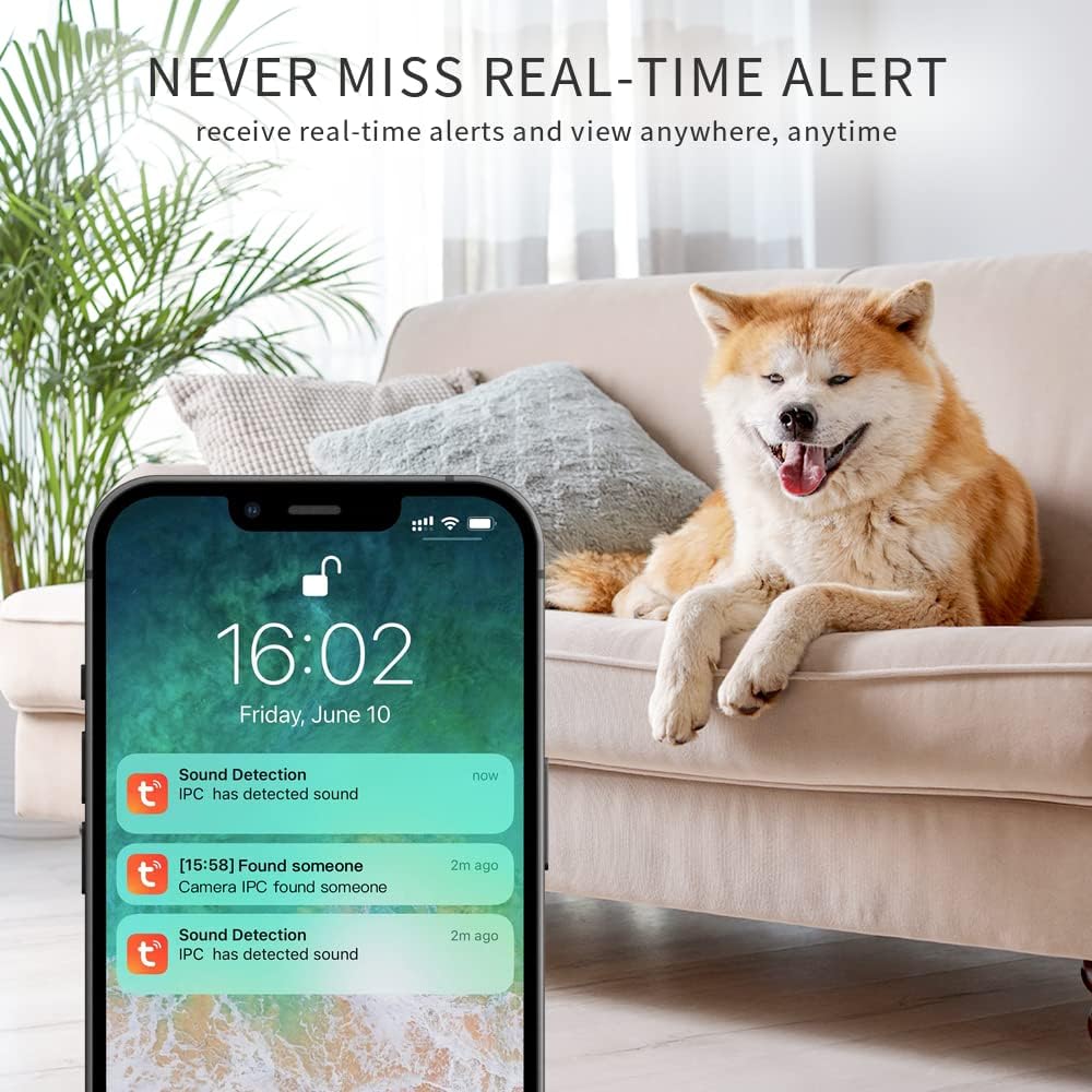 كشف الحركة/الصوت في الوقت الحقيقي: تنبيهات تلقائية على هاتفك الذكي على الفور عندما تكتشف الكاميرا الداخلية الحركة أو الصوت حتى في الرؤية الليلية. مريحة لك لمعرفة ما يحدث عندما تكون بعيدا عن المنزل. قم بتمكين وضع الدورية على تطبيق Tuya لمواصلة حماية أمن منزلك