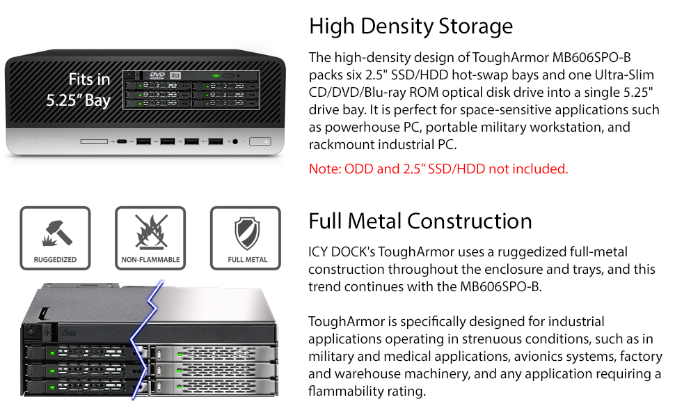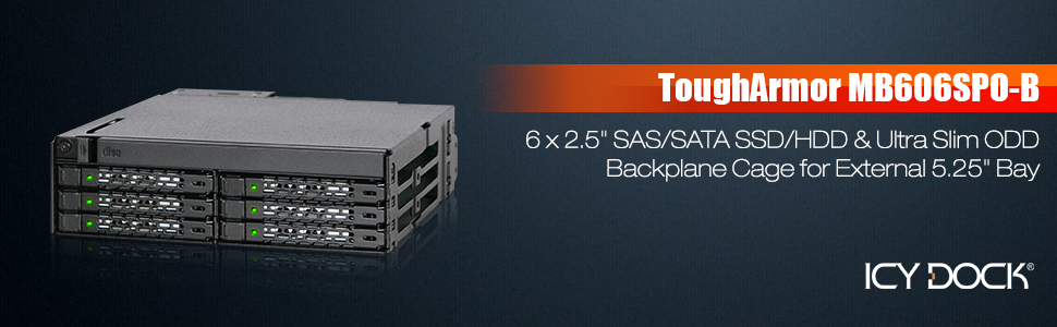 ICY DOCK 2 Bay 2.5 SAS/SATA SSD/HDD & (Ultra) Slim Optical Disk Drive CD DVD ROM Backplane Enclosure for 5.25" Bay | ToughArmor MB602SPO-B