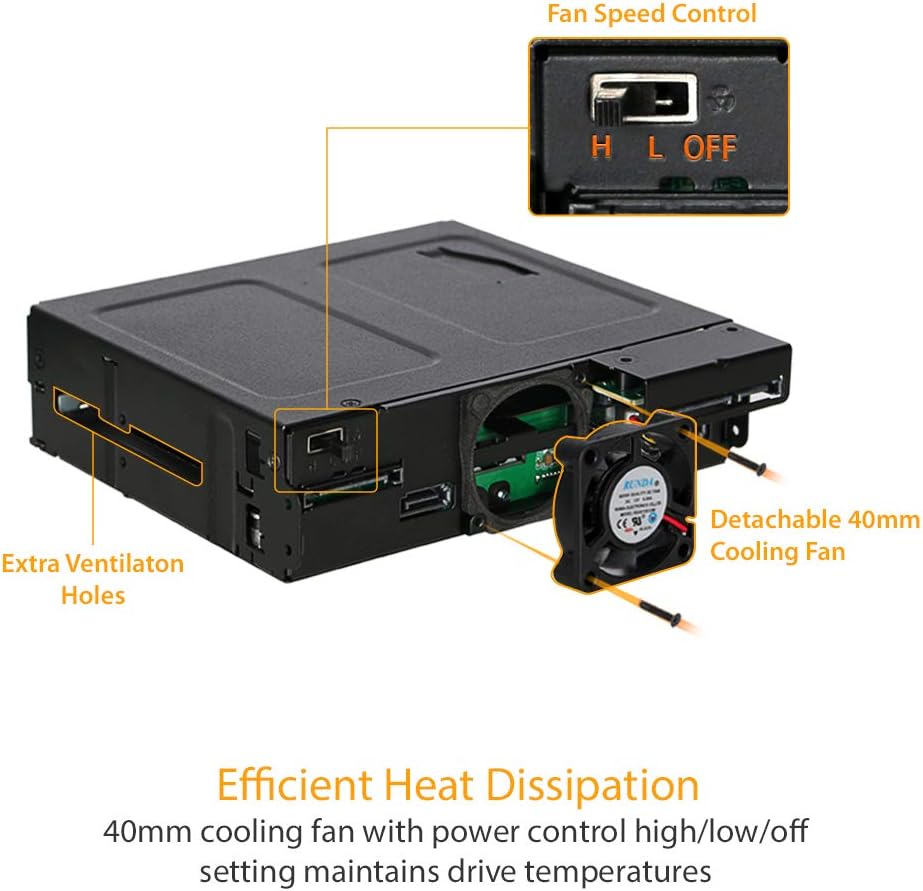 - 40mm cooling fan with high/low/off setting maintains drive temperatures