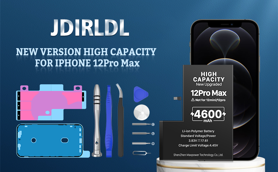 (4600mAh) Battery for iPhone 12 Pro max,(Model: A2410 A2411 A2412 A2342) Replacement Battery with High Capacity for iPhone 12 Pro max with Full Remove Repair Tool Kit.lk