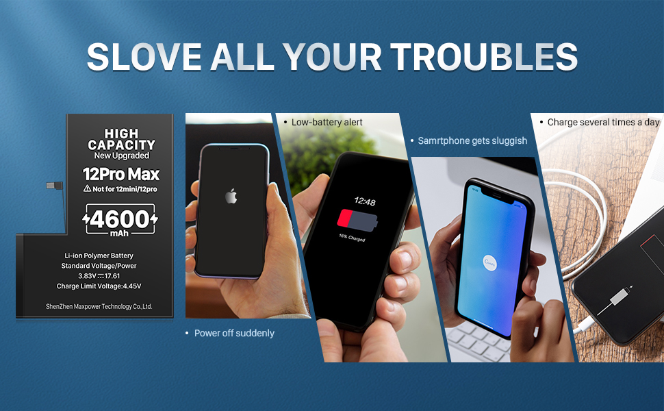 [High Quality Assurance]☎ : The new upgrade iPhone 12 Pro max battery has undergone multiple inspections by professionals. Each battery has obtained CE, FCC, UL, PSE and ROHS certification. The built-in IC smart chip has multiple protection functions to prevent overcharging. Overheating, thereby extending battery life and durability.