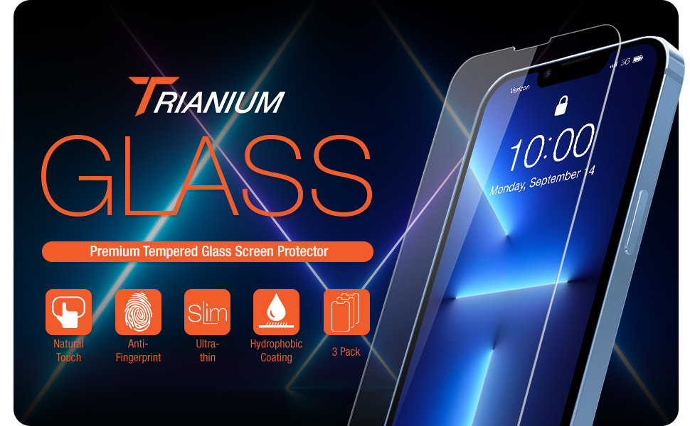 Trianium Tempered Glass Screen Protector Compatible for iPhone 13 Pro Max (2021), 3 Pack HD Glass 9H Film (w/Alignment Case Tool included)