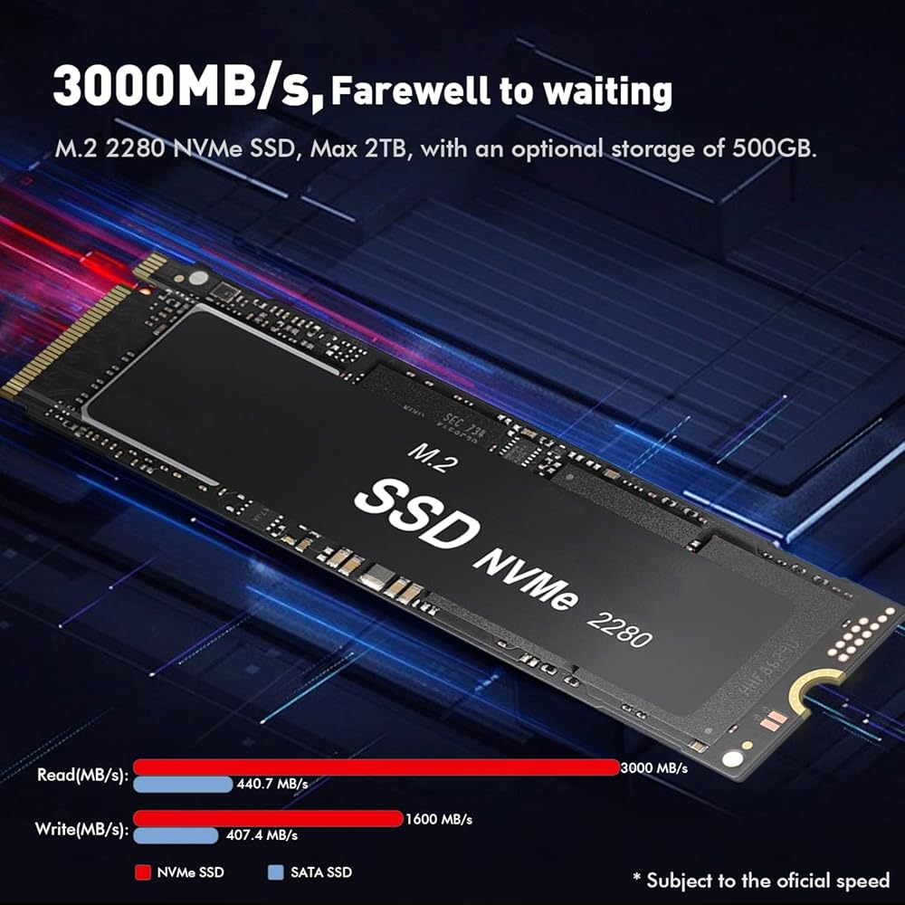 🚀【Larger Storage】TRIGKEY Mini PC is equipped with dual-channel 16 GB SO-DIMM DDR4-3200MHz RAM (16GB x 2) and supports DIY upgrade RAM to 64GB (2 x 32GB), which is faster in data loading; 500GB M.2 PCle 2280 NVME SSD (read speed 3000MB/s, write speed 1600MB/s), expandable to 2TB, and supports 500GB~2TB 2.5-inch SATA HDD or SSD (not included), which can accommodate large systems and files.