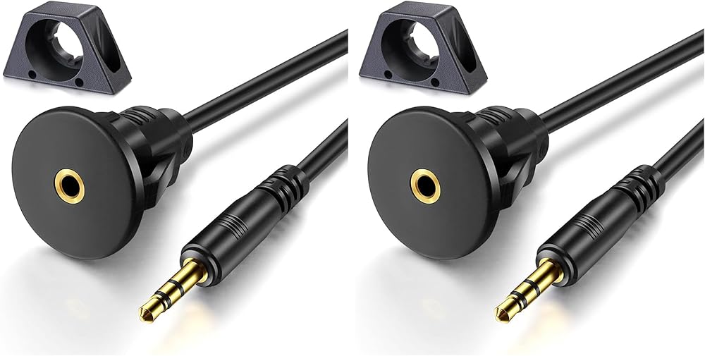 GOLD PLATED 3.5MM MALE to 3.5MM FEMALE FLUSH MOUNT EXTENSION CABLE, this could be used in car, marine, bike or motocycle. Accessories such as braceket, flush mount components, screws & lid are included for the installation in existing socket or new hole on dashboard.
