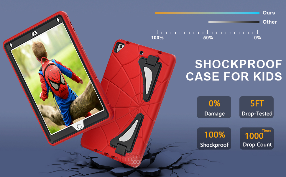 ➤【Exclusive Design】 The appearance design makes you associate with the hero of animation. Fans can imagine heroic battling villains for the fate of the world with this ipad 6th generation cases pattern. Spider Web design makes it more anti-slip and easy to hold