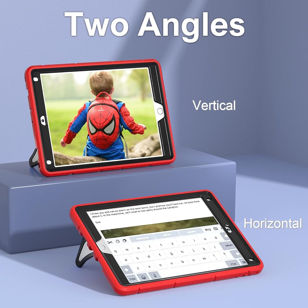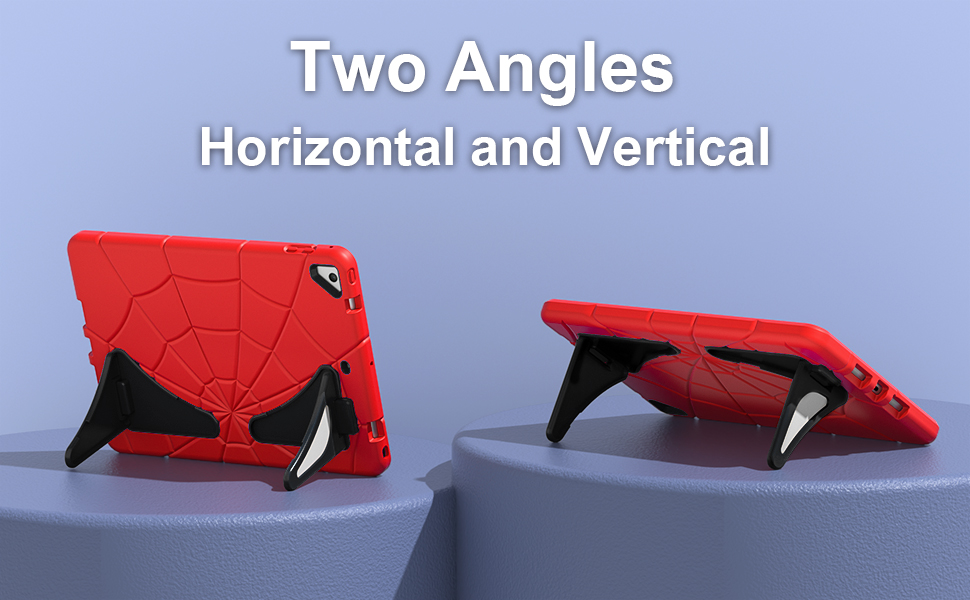 ➤【Functional Sturdy Kickstands】 Kids case for iPad 6th/5th generation built-in double strurdy kickstands, extremely sturdy when using (watching and typing) . Double kickstands design is more sturdy and durable than one kickstand