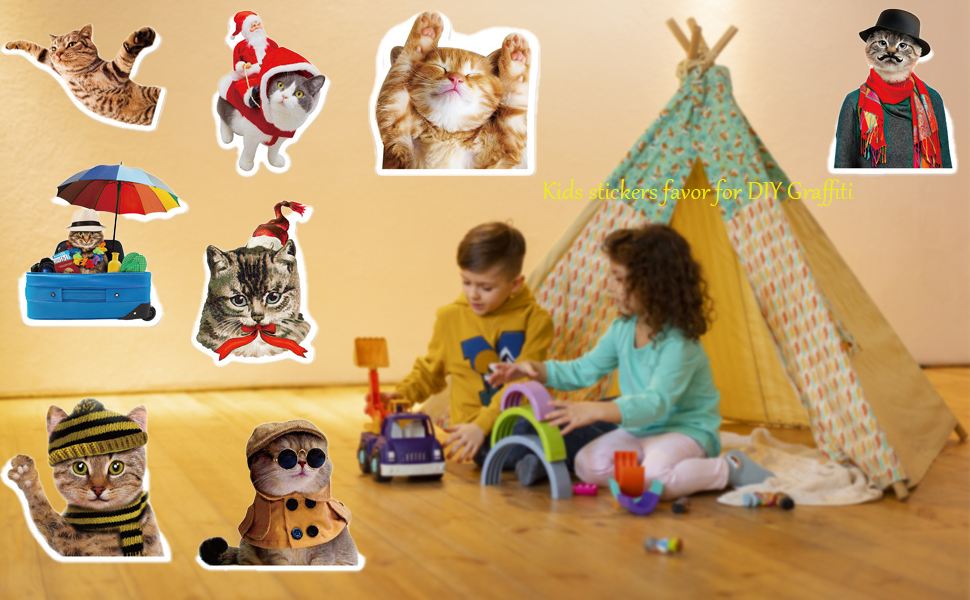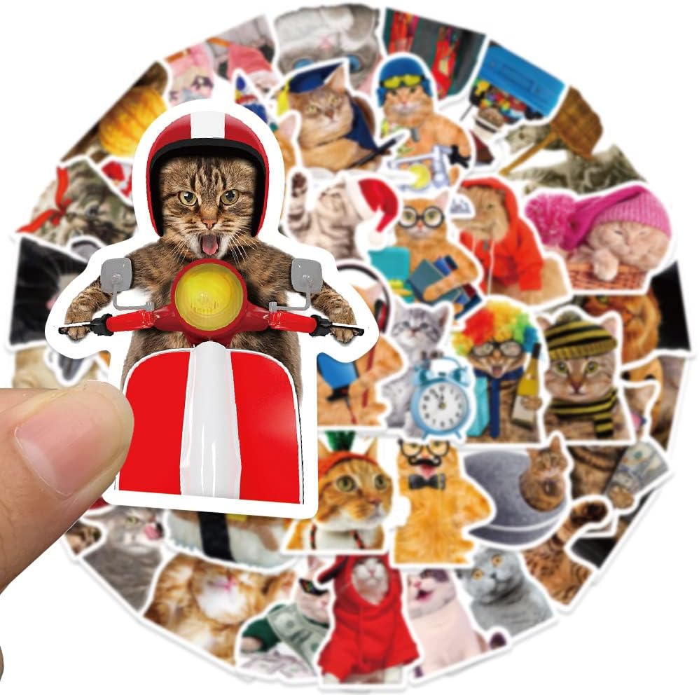 🐱This cat stickers pack contains 50pcs 50 non-repeating stickers of funny cats with different costumes, actions, shapes, and expressions, which are very charming for kids as their gifts or decorations
