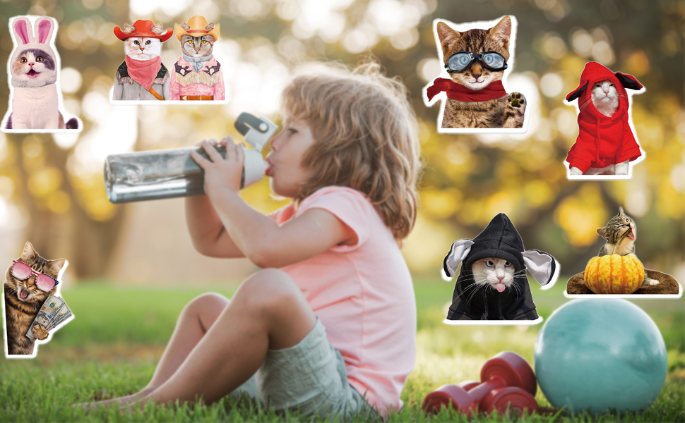 🐱Cats stickers is widely used in our life, you can diy anywhere you like, usually we apply these stickers to water bottles, skateboards, computers, laptop, mobiles, cars,guitar, etc.