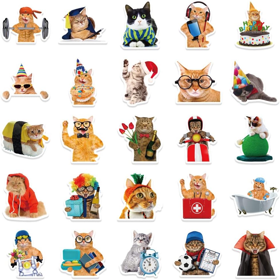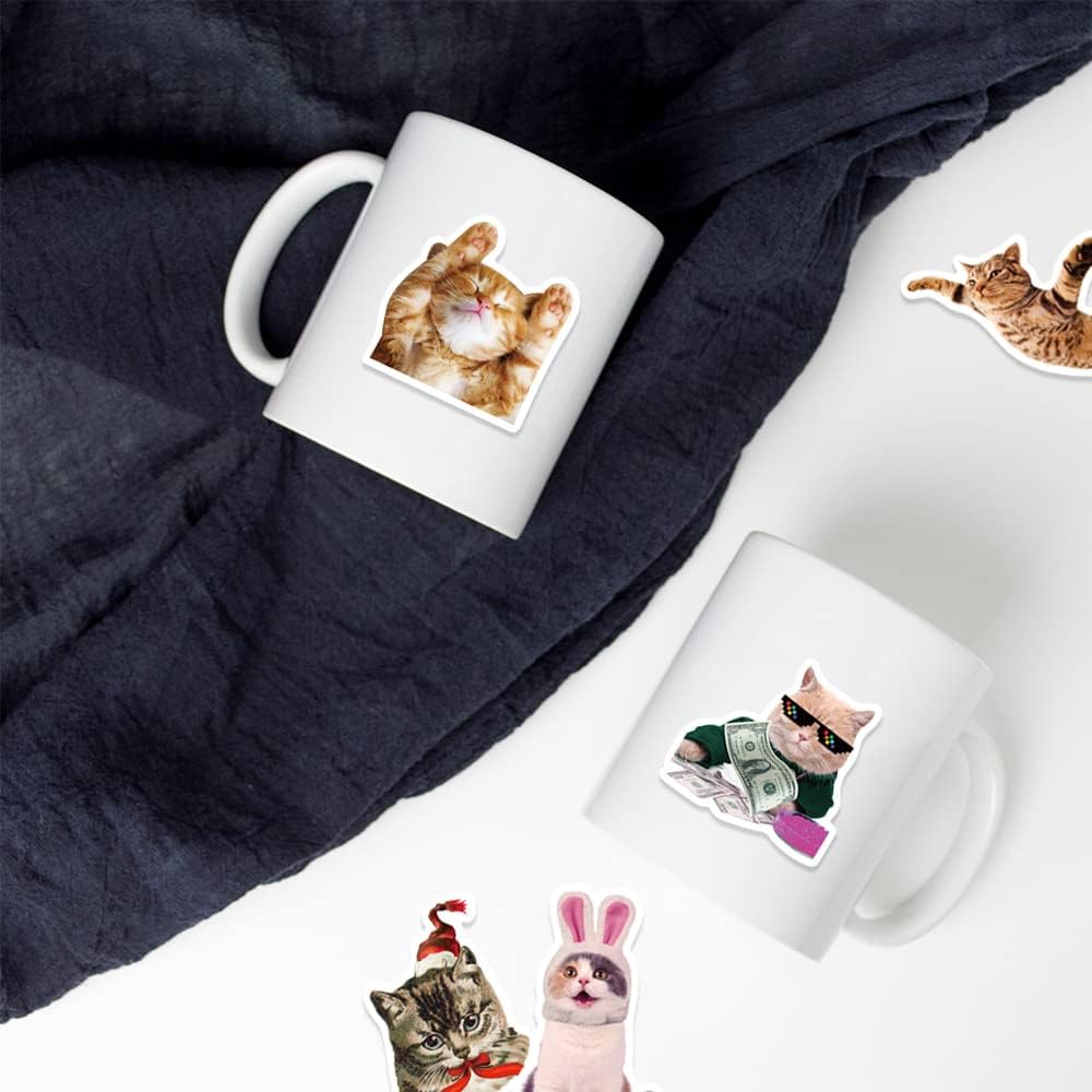 50Pcs Funny Cat Stickers for Kids and Teens - Adorable, Kawaii and Colorful Decals Perfect for Water Bottles, Laptops and Scrapbooking. Waterproof and Easy to Peel Realistic Decals that Add Personality to Any Stationery Notebook or Graffiti Art!