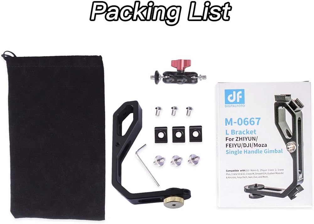 DF DIGITALFOTO Universal L Bracket Handle Gimbal Accessories,Mounting Monitor/Microphone with Bean Grip Compatible with DJI Ronin S,Ronin SC Zhiyun Crane M/2/2S,Moza Air 2, AK2000/4000 and More Gimbal