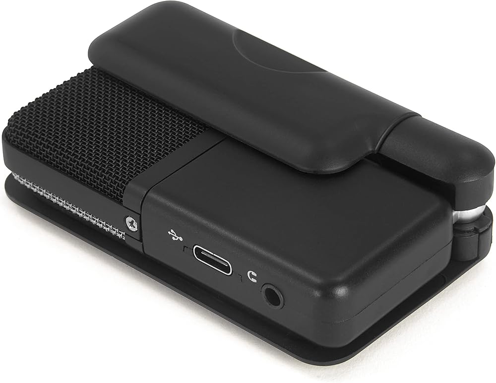 Compact design clips directly to a laptop, sits on a desk or mounts to a tripod