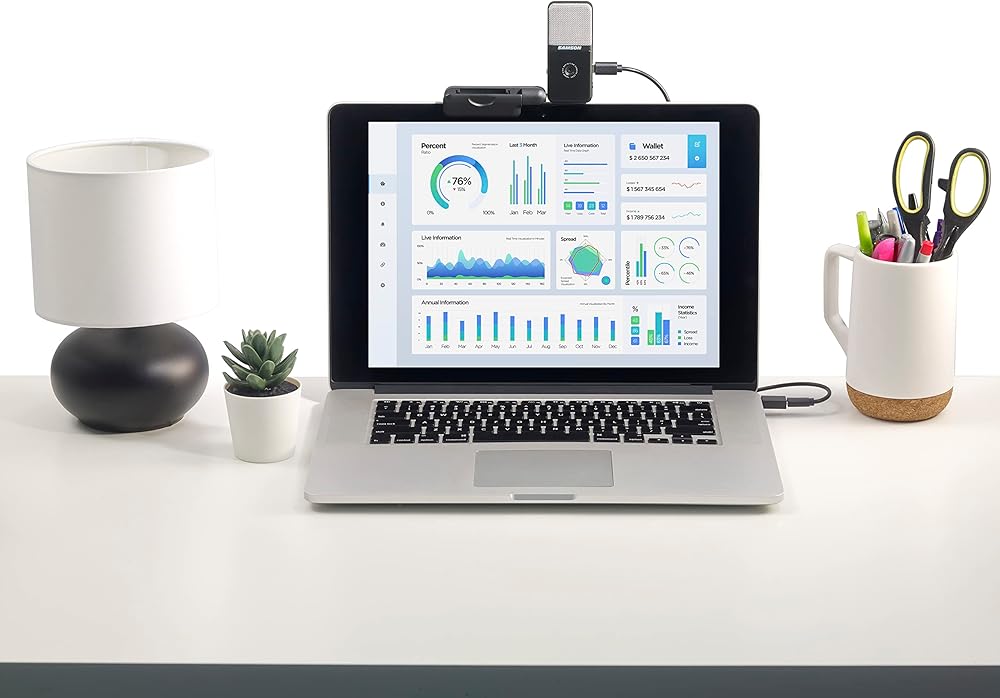 Create media from any location that both looks and sounds professional with Go Mic Video. The portable condenser microphone of Samson's innovative Go Mic is paired with a crisp and clear Full HD 1080p/30fps webcam to create the ultimate solution for anyone looking to make high quality digital recordings. Perfect for live streams, podcasts, video conferencing or working from home, Go Mic Video can be quickly set up and configured to ensure your presentations make the most impact with your audience.