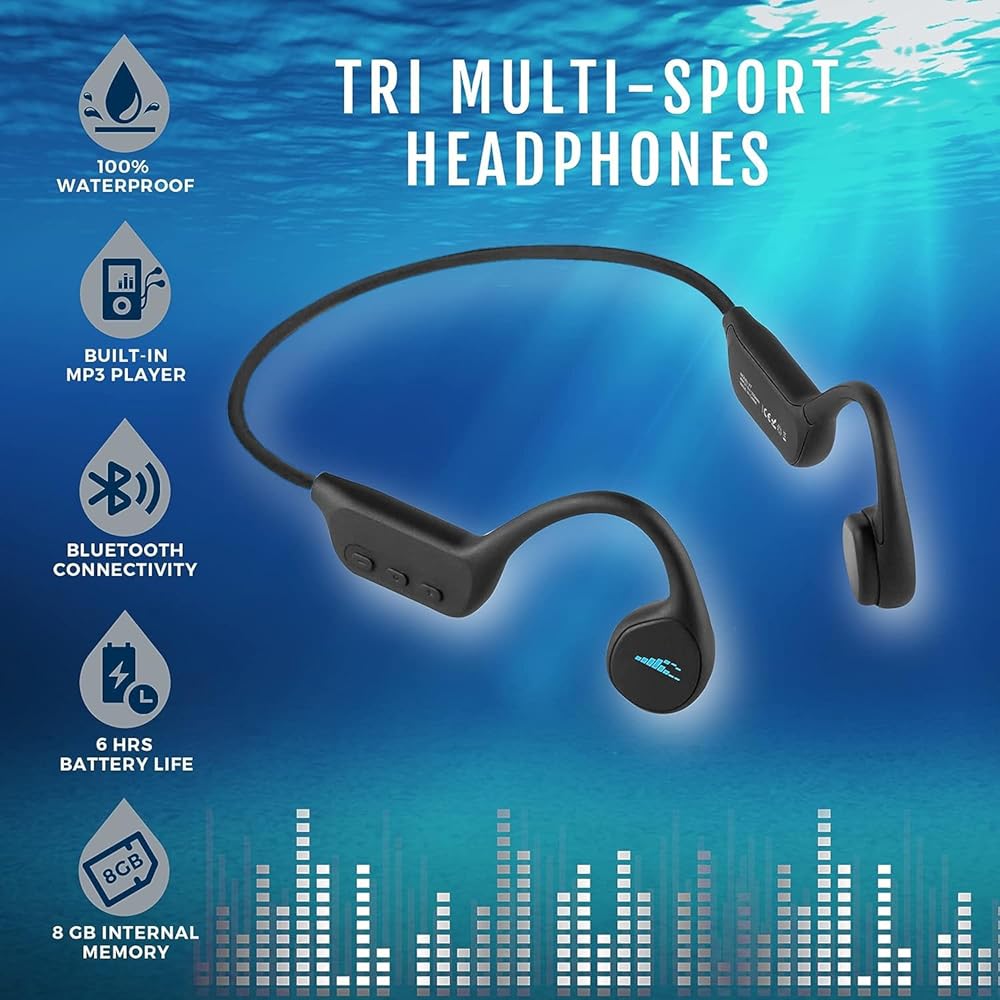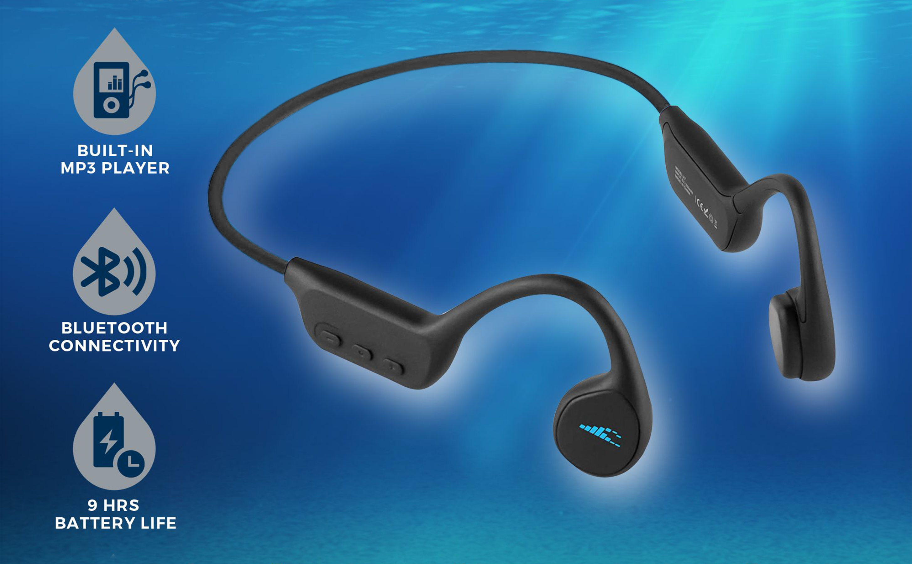 Multi-Sport Waterproof Headphones - Enjoy your music in and out of the water with our breakthrough Bluetooth bone conduction headphones with a built-in MP3 player. It securely fits around your head for a wireless experience as you run or swim.