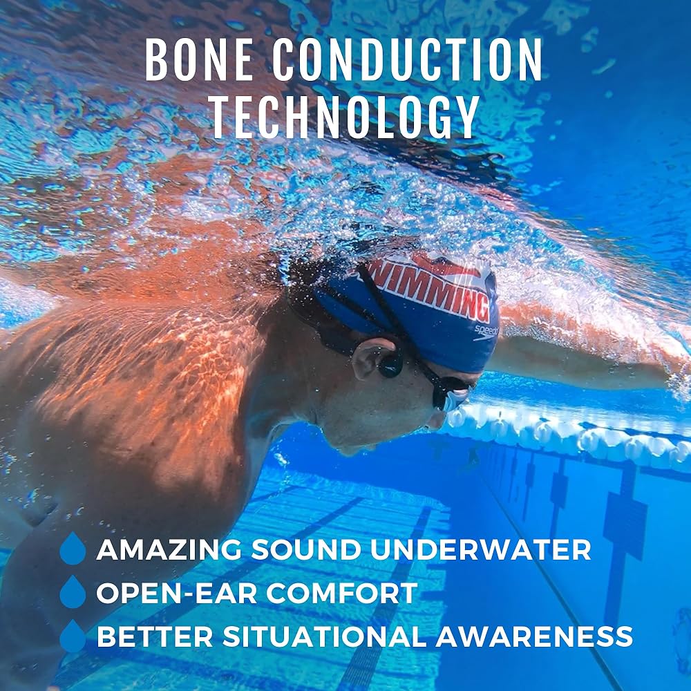 Stream Music from Your Device - Bluetooth connection lets these headphones sync with your smartphone or music-enabled smartwatch to play podcasts, audiobooks, and playlists as you train. (Note that Bluetooth range underwater is only a few inches.)
