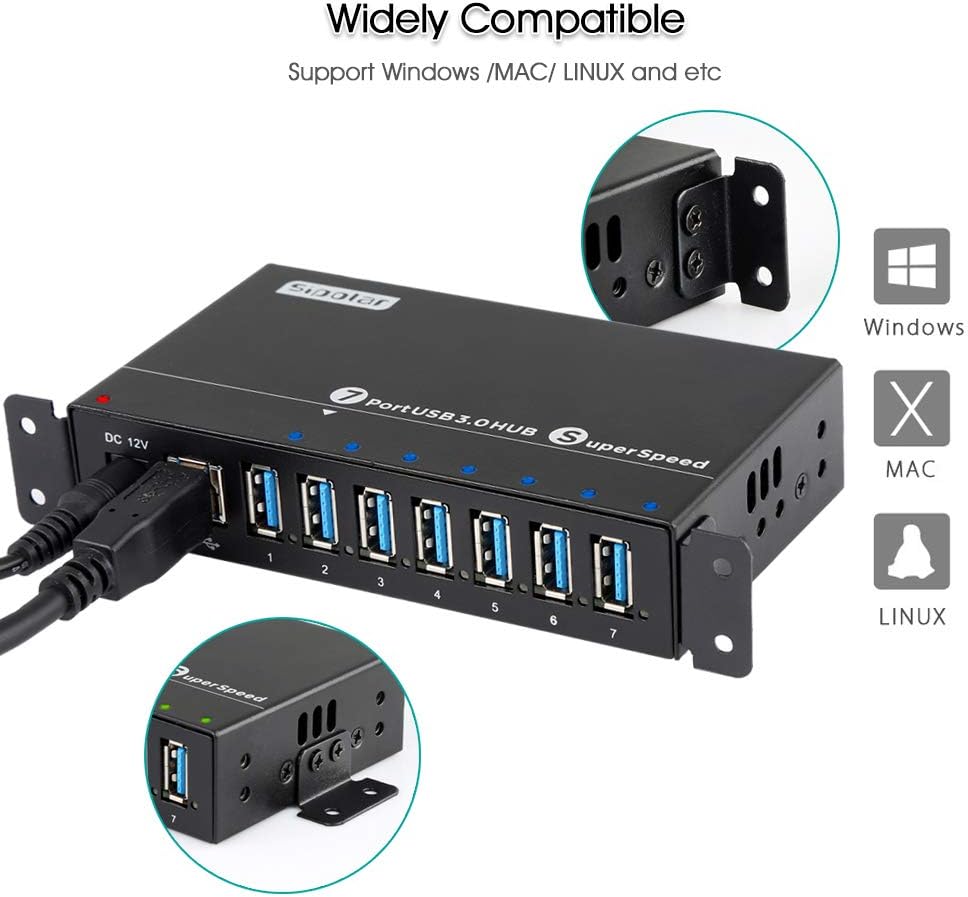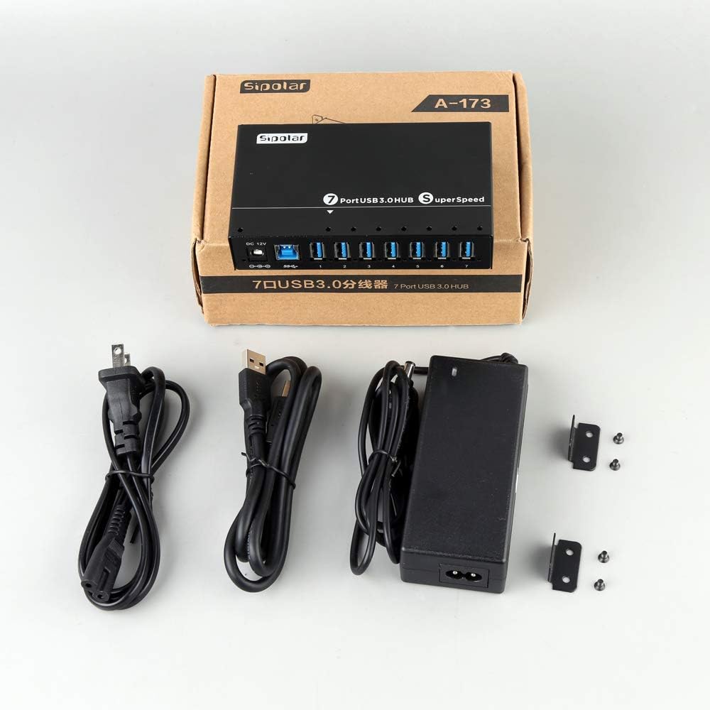 Powered USB Hub, Sipolar 7-Port USB 3.0 Hub with LED Indicator Multiport USB Spilitter with 12V 3A Power Adapter USB Port Expander for Laptops, PC, Computer, Miner, Mobile HDD, Flash Drive and More
