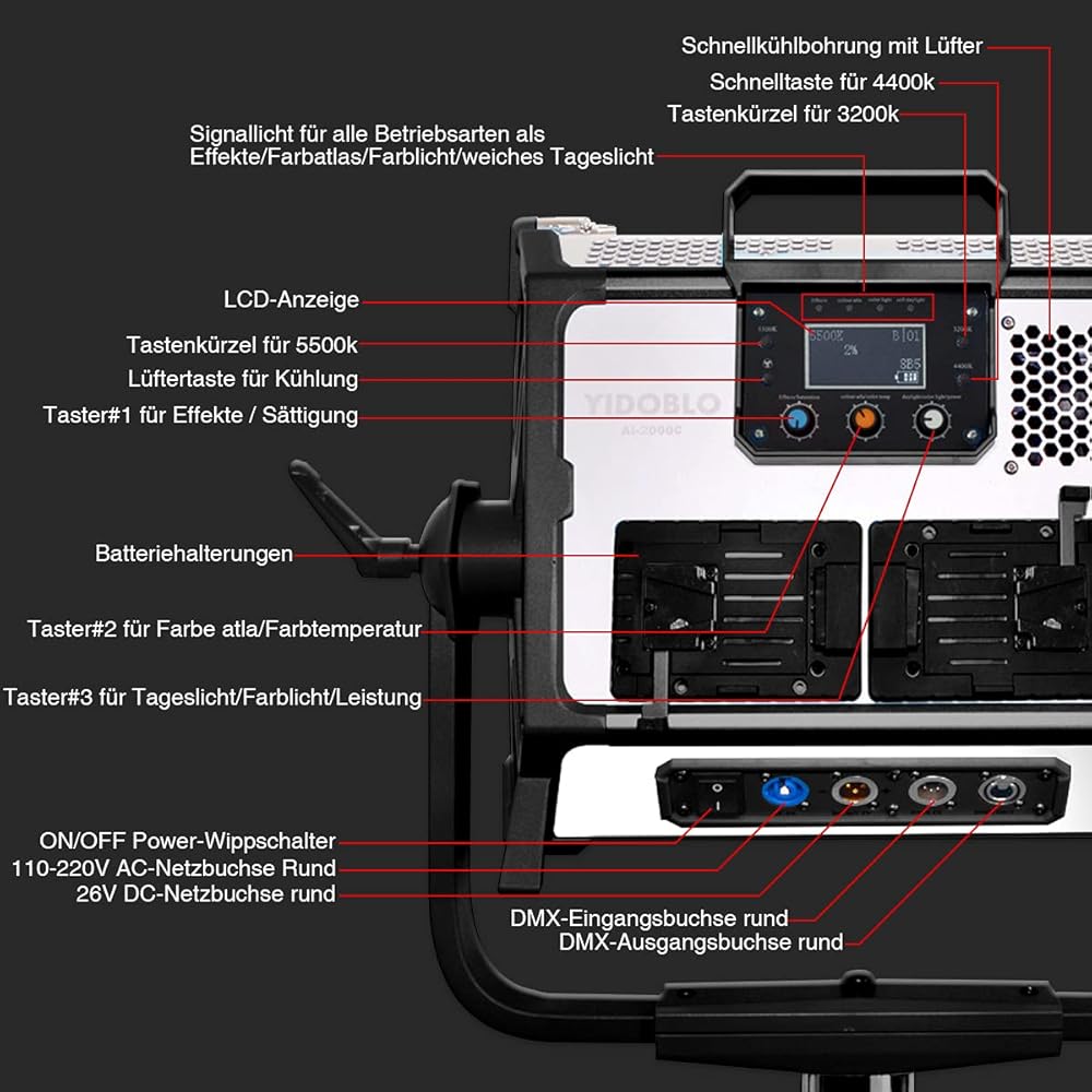 Yidoblo LED Source 3072pcs, 2800K-9900K, Full RGB+5500K gamut with hue saturation control.Dimming 0-99% continuous