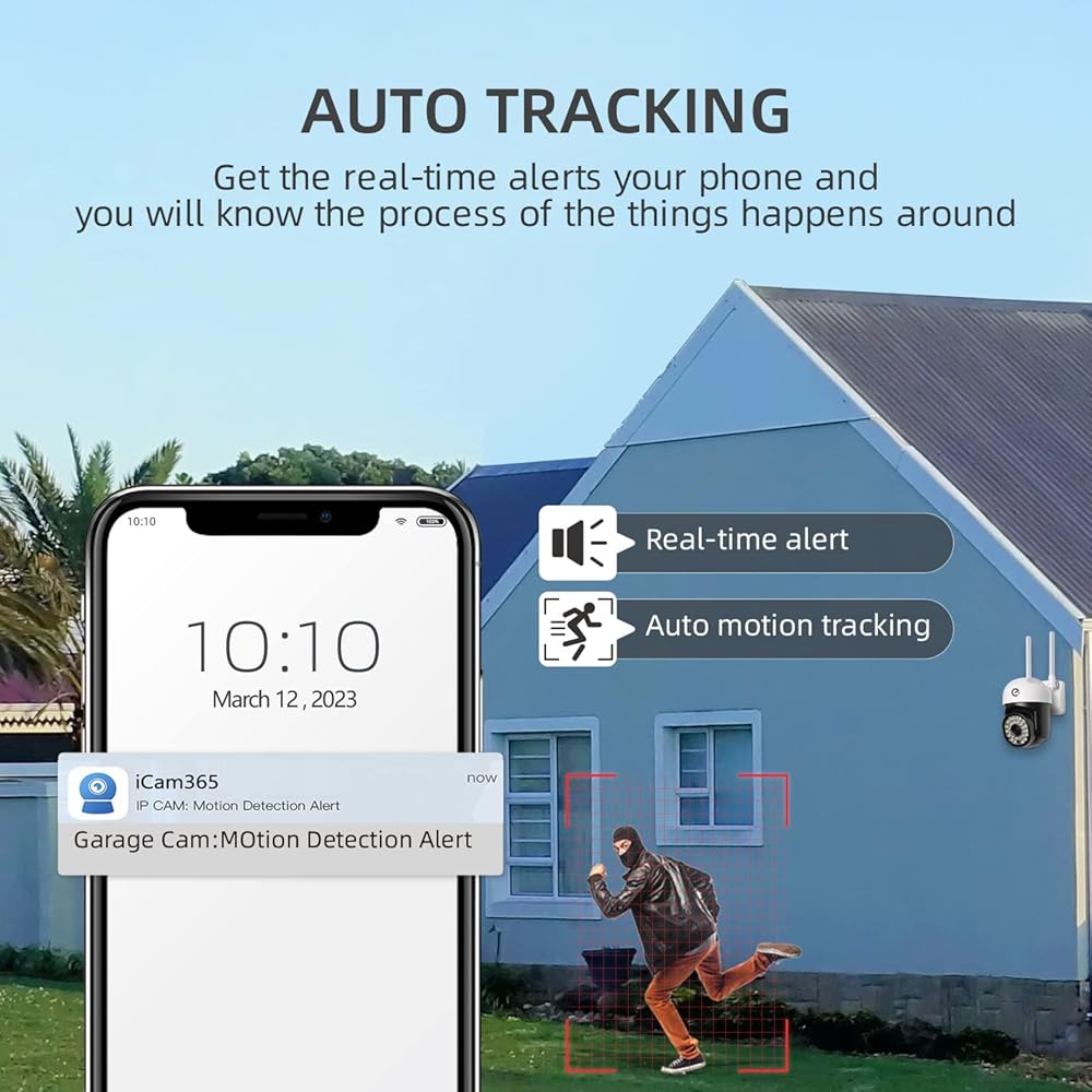 Real-time Alert & 2-Way Talk - Motion alerts will be sent to device while you're away to keep you informed of every potential danger at your home.Work with peace of mind by outdoor Camera WiFi, which allows you to keep in touch with family or pets anywhere anytime with built-in speaker.(Please reset after power on to avoid network conflicts or the code cannot be scanned.Then install the device.Provide 180 days of free replacement, please contact us in your order).