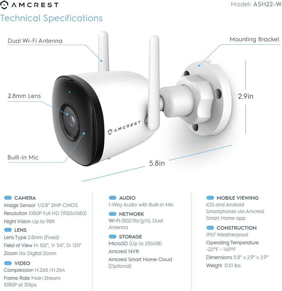 SIMPLE, RELIABLE, SECURE – This Amcrest 2.4ghz WiFi home security camera features a secure SSL/HTTPS connection, wireless AES/WPA2 encryption, FCC and CE certificates and receives regular firmware updates (Does not support 5ghz). At Amcrest, we want to ensure the safety of our customers, their loved ones, homes and businesses. You'll receive a full 1-year US Warranty and Lifetime Support provided directly from Amcrest.