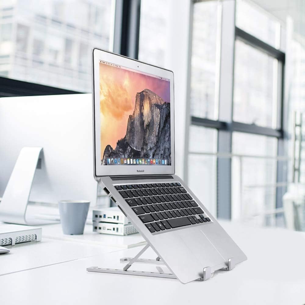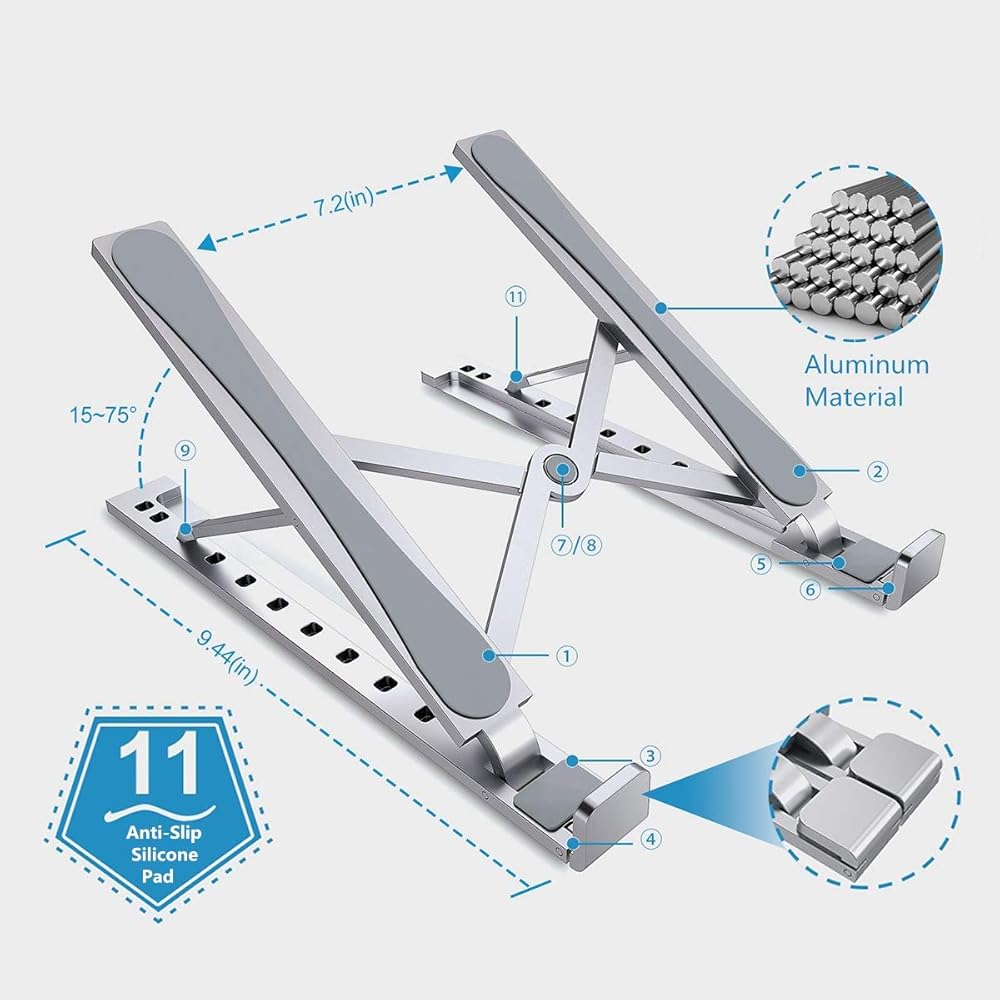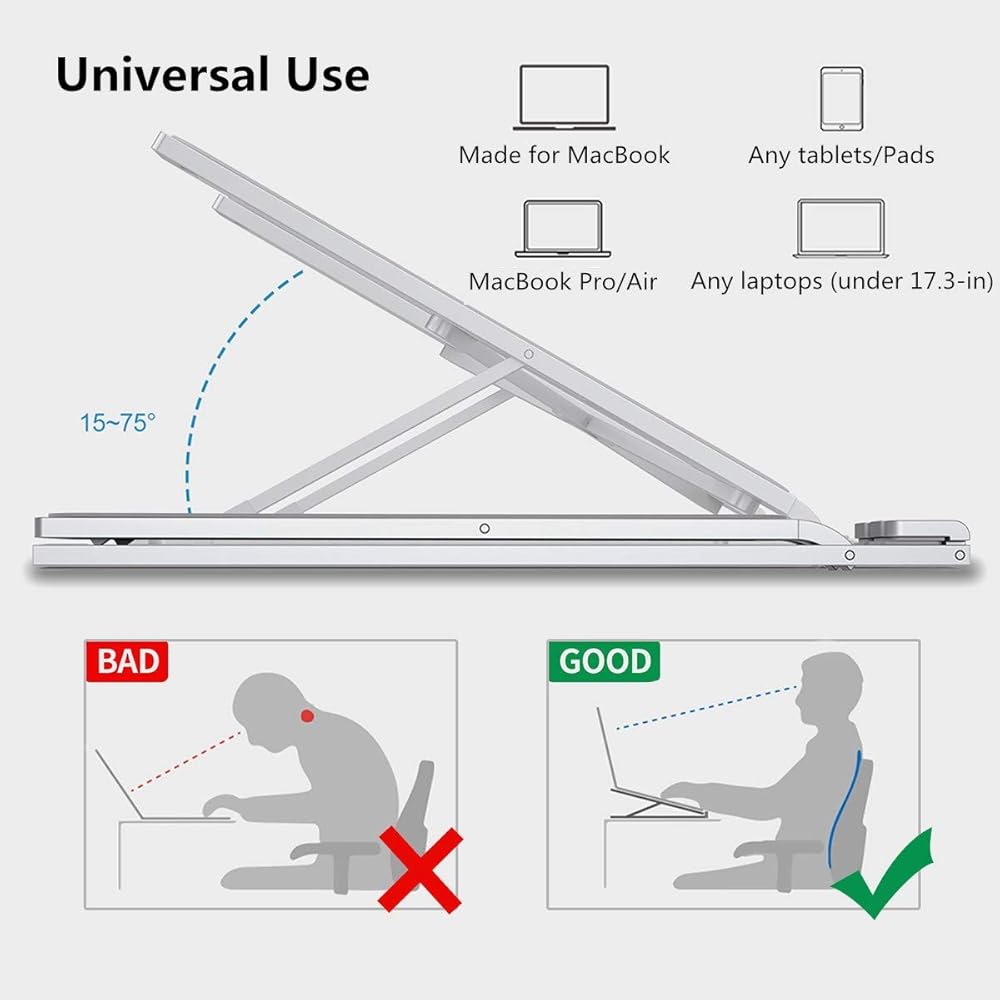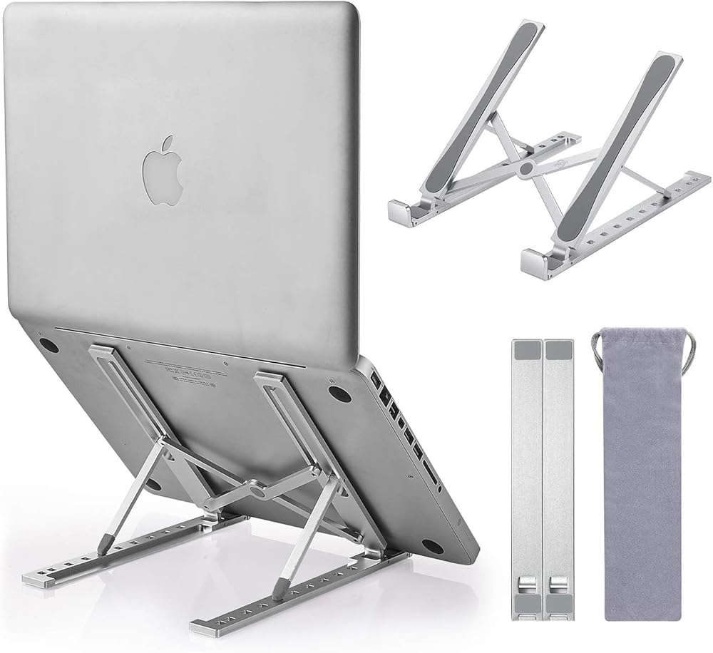KABCON Quality Laptop Stand,Portable Foldabele Aluminum Adjustable Solid Desktop Tablet Holder Up to 15-in Laptops Stand for MacBook Air Pro,Dell XPS, HP,Lenovo,ASUS Transformer, Etc.with a Carry Bag