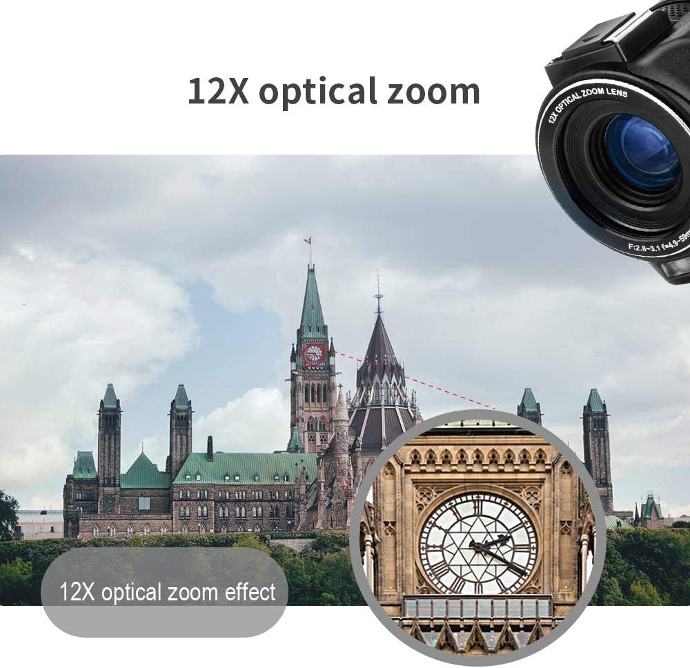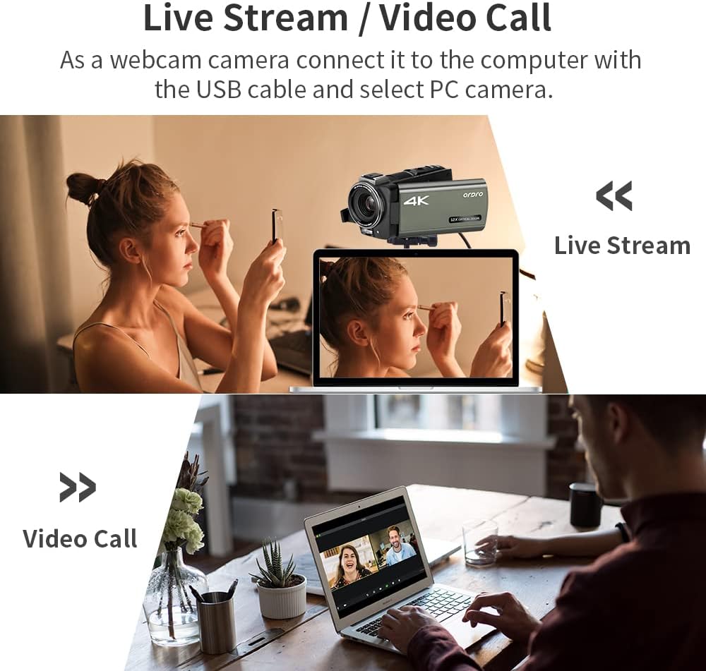 【Excellent Features】Ordro AX65 is equipped with a 5MP 1/3 inch CMOS sensor with a resolution of up to 4k. You can experience 2880 x 2160 resolution live video shooting. Intelligent light sensitivity improves picture clarity.12X optical zoom can zoom in on the subject losslessly and increase the pixel points to easily capture the fine and clear picture quality.The 3.5-inch IPS touch screen (16:9) resolution.