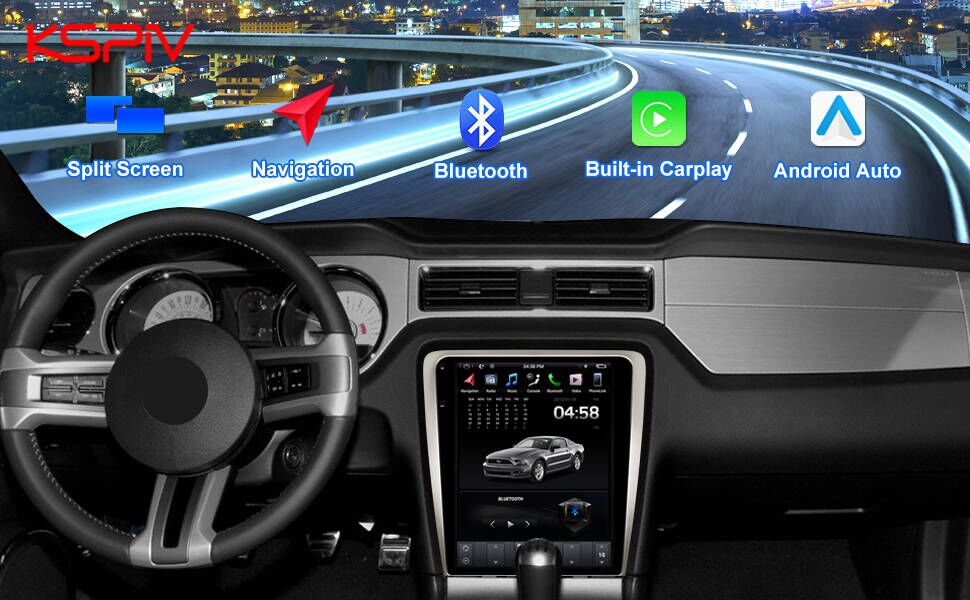 KSPIV 12.1 inch Android Car Stereo with GPS for Ford Mustang 2010-2014 Navigation Multimedia Player Double Din Car Stereo with Navigation CarPlay DSP Auto Audio Video Voice Plug in and Play