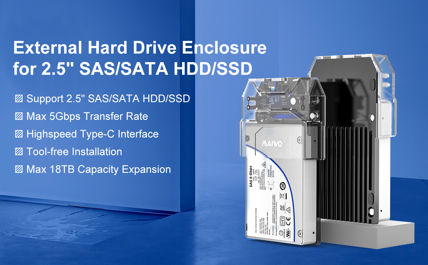 【High Speed Transfer】SAS/SATA Hard Drive Enclosure Supports READ&WRITE SAS/SATA HDD with UASP/Trim tech, which can improve transmission speeds up to 5Gbps and easier transfer large files.