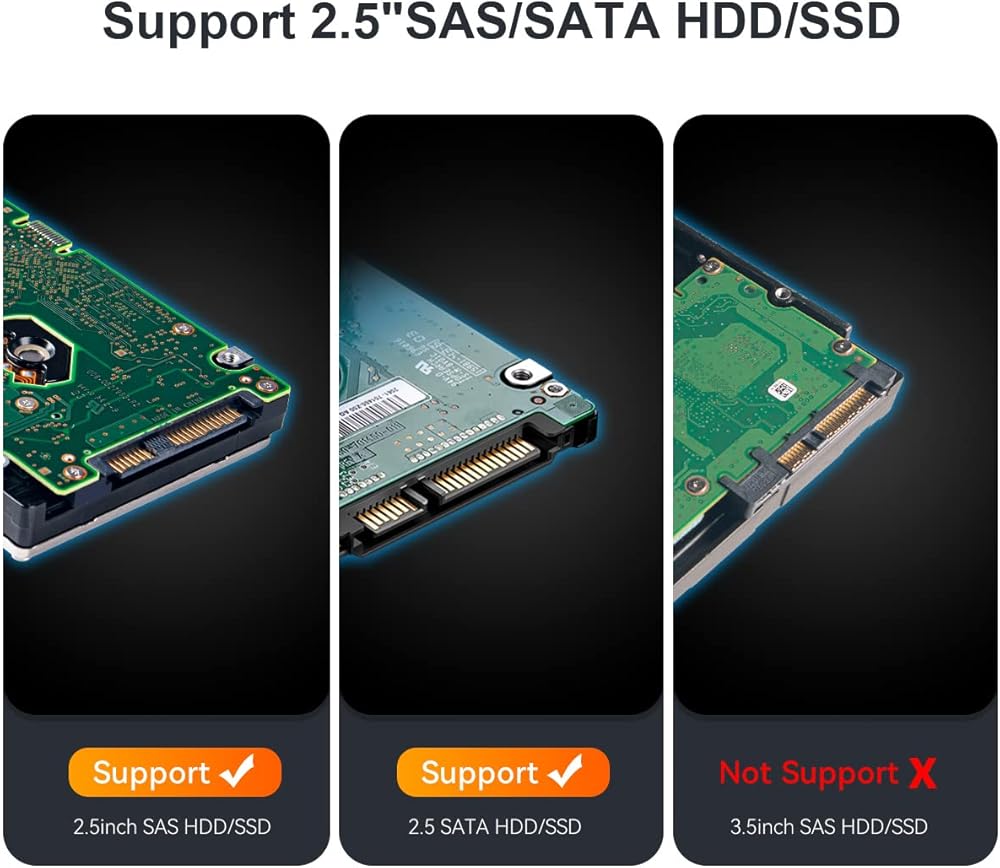 【Compatible】 SAS/SATA Hard Drive Reader Compatible Multi OS, Windows, Mac OS,Linux ,Android. ONLY Support 2.5 inch SAS/SATA Server HDD.