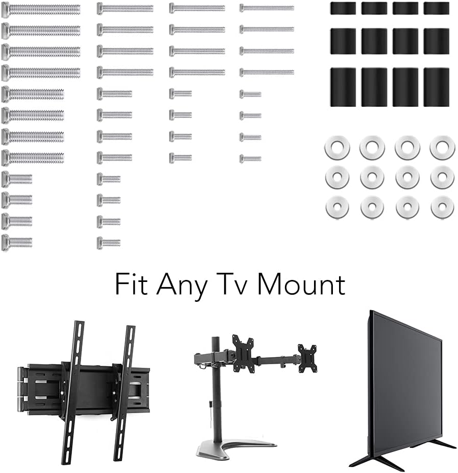Universal TV Mounting Hardware Kit Fits All TVs Up to 80" - Pack Contains M4, M5,M6 and M8 TV Screws, Washers and Spacers with Any TV/Monitor Mount Black