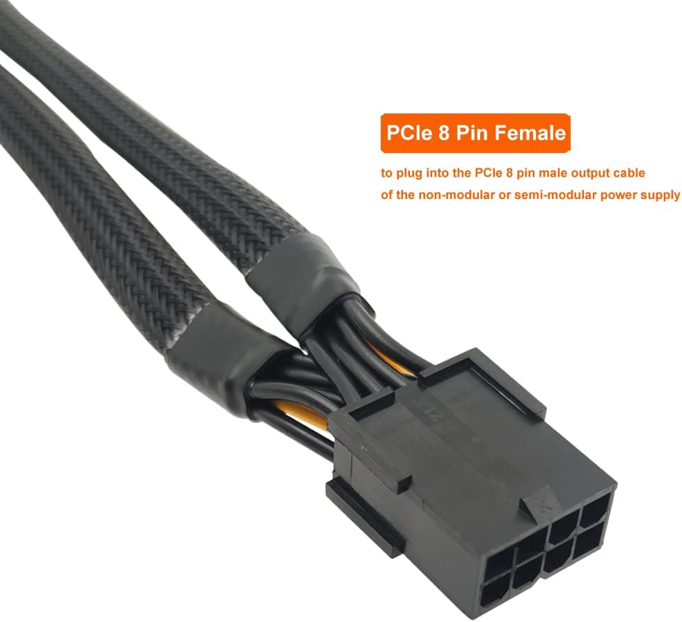 Compatible with common non-modular PSUs and semi-modular PSUs with PCIe 8 pin male cable; (Note: It does not work with Fully-modular PSUs.)