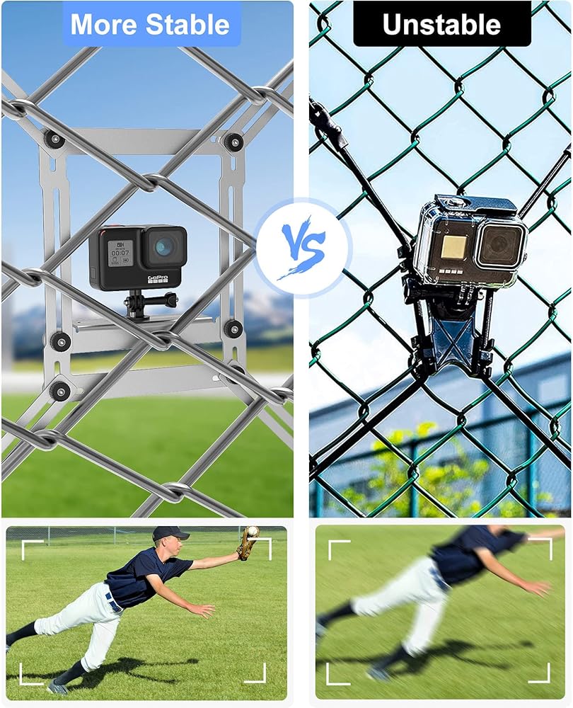 【Freedom Shotting Angle】The chain link fence mount can adjust up, down, left, and right freely, easily to adjust the Camera or phones to perfectly align through the fence holes, and make sure that the fence does not appear on the screen.
