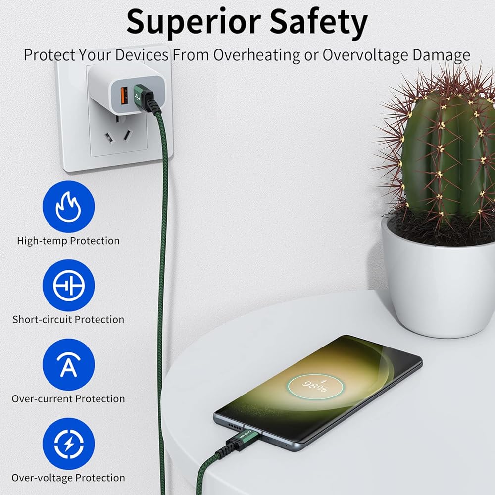 Car Carplay Cable for iPhone 15 15 Pro Max 15 Plus Cable, (3.3ft 2-Pack) USB A to USB C 3A Fast Charging Braided Charge Cord Compatible with Samsung Galaxy S20 S10 S9 S8 Plus,USB C Charger(Green)