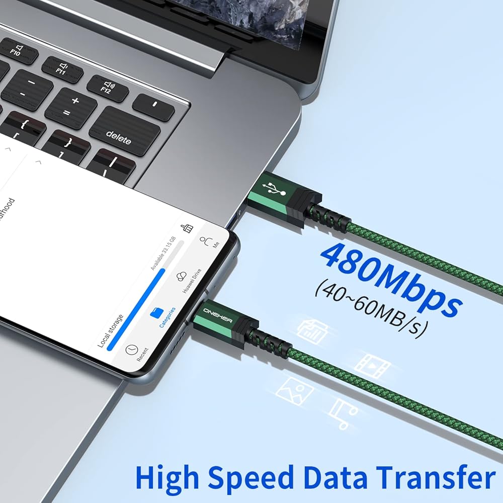 [ QC3.0 FAST CHARGING & DATA-SYNC ]: 3.1A Fast Charge, Transfer speed up to 480Mbps,Data Transfer and Power Charging 2 in 1. 56kΩ resistor provide outstandingly reliable conductivity ,High-quality cables protect your devices free from damage.