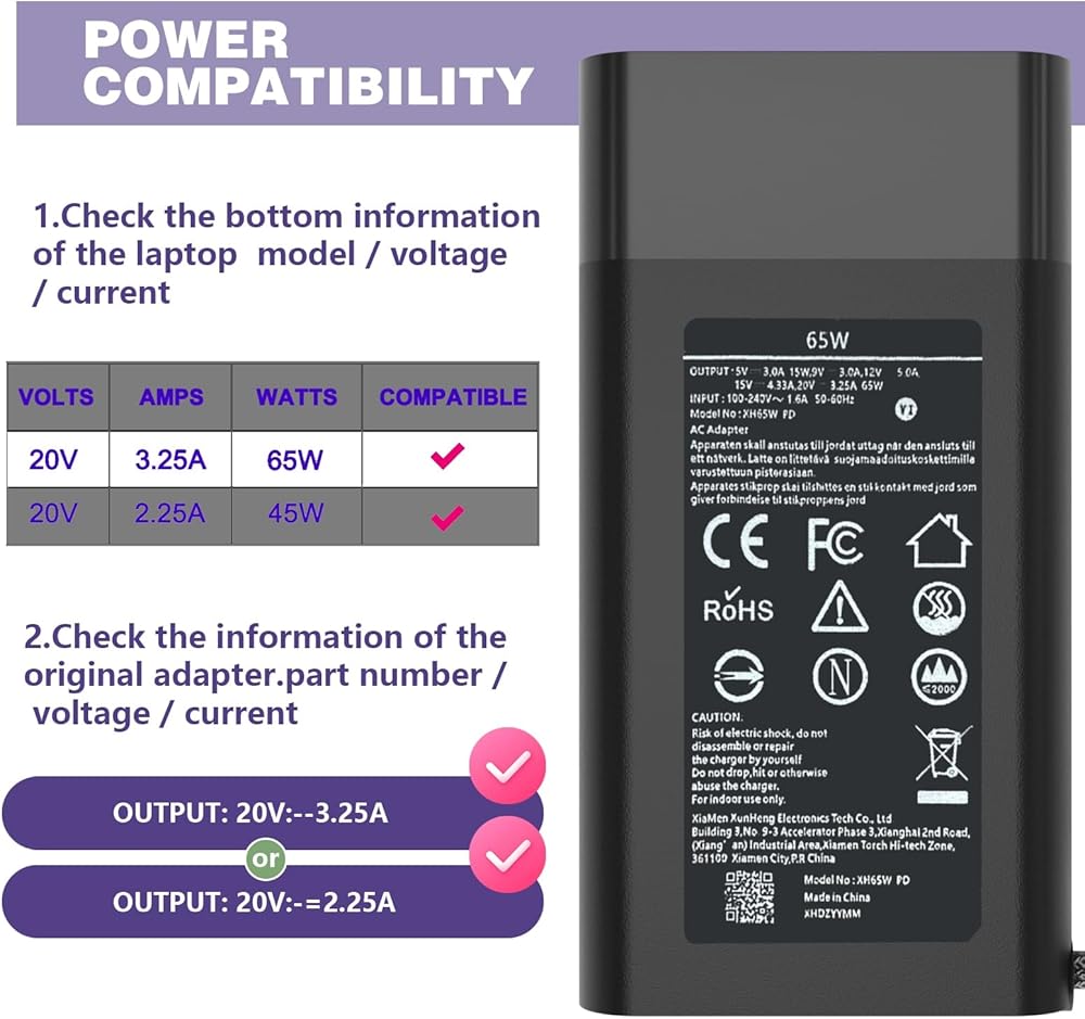 🔋【Safety and Warranty】 Dell 130w laptop charger is CE/FCC/ROHS safety certified and designed.If you have any questions about the charger, please contact us. We provide 30 days unsatisfactory refund for the dell 130w laptop charger and 12 months warranty service.