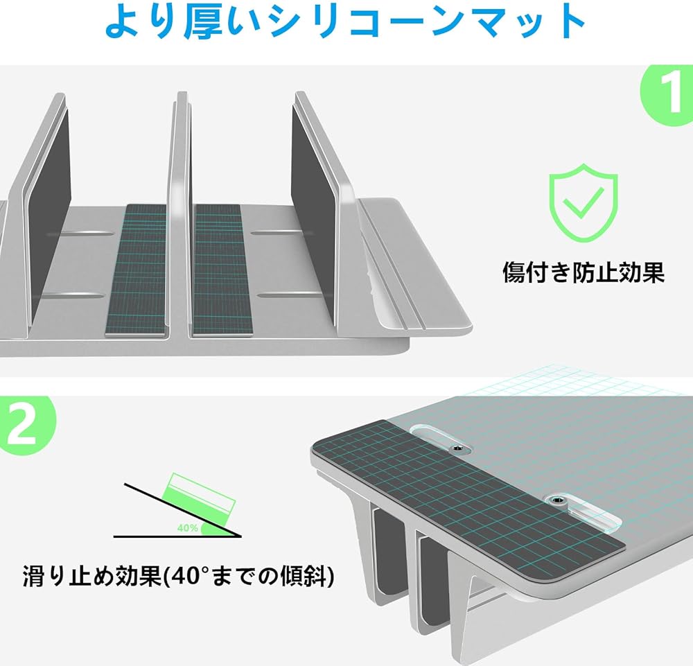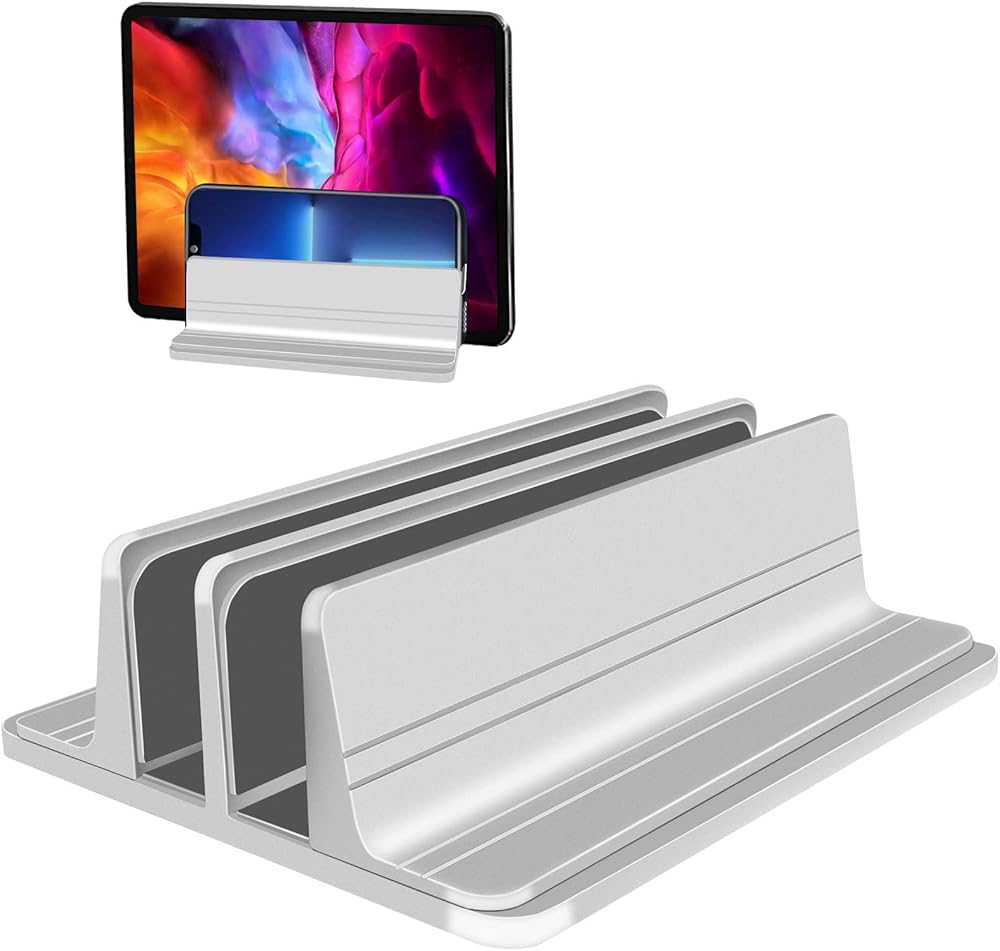حامل كمبيوتر محمول، حامل رأسي، حامل كمبيوتر شخصي، حجرتان للتخزين، عرض قابل للتعديل، مادة سبائك الألومنيوم، مضاد للانزلاق ومستقر، حامل كمبيوتر محمول لجميع أجهزة MacBook Pro/Air/Microsoft Surface (فضي)