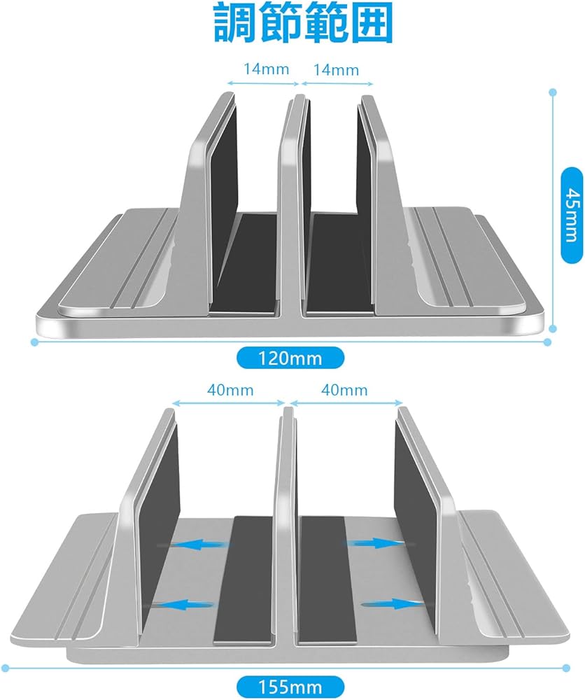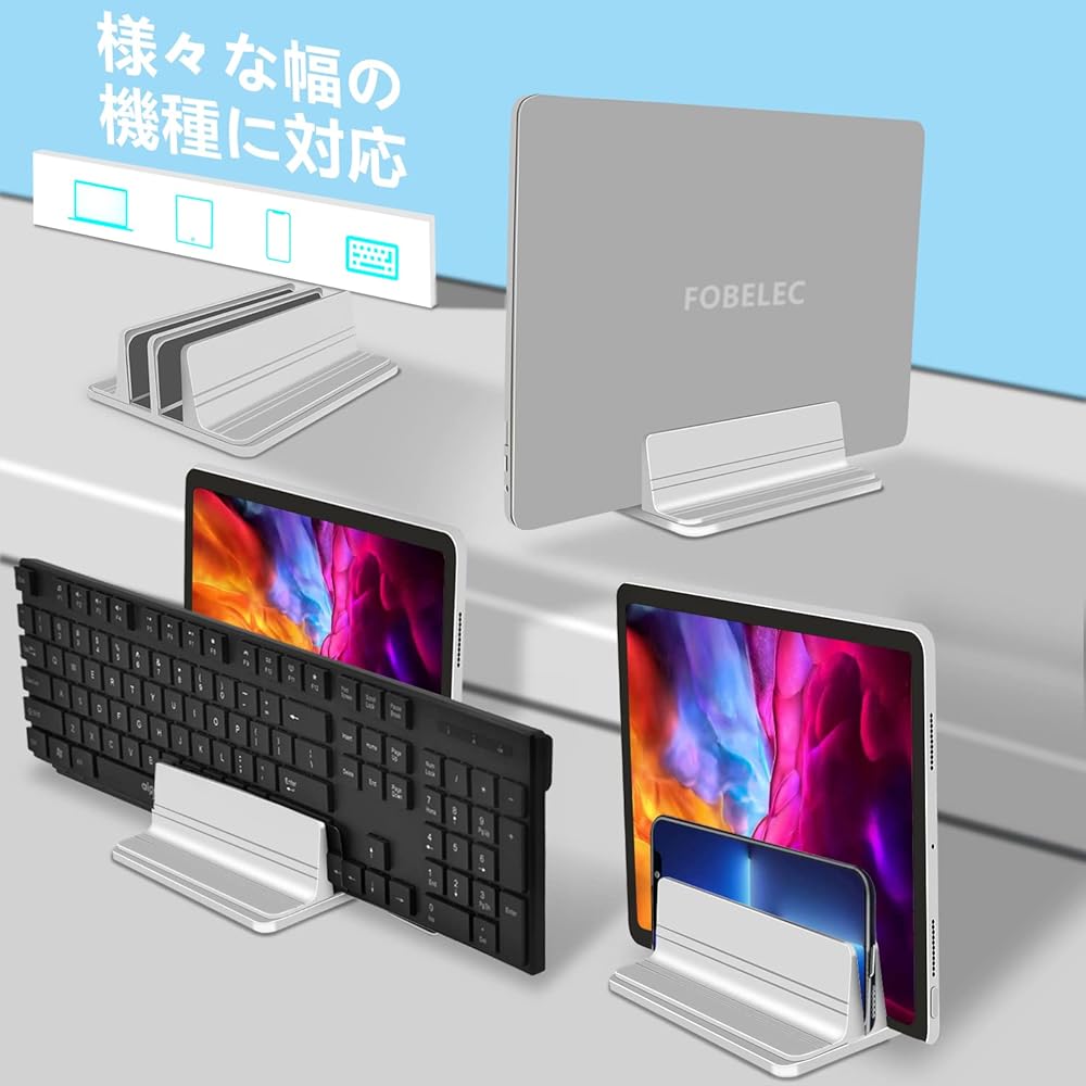 حامل الكمبيوتر المحمول FOBELEC، حامل عمودي، حامل الكمبيوتر الشخصي، يحمل جهازين، عرض حامل قابل للتعديل، مادة سبائك الألومنيوم، مضاد للانزلاق ومستقر (فضي)