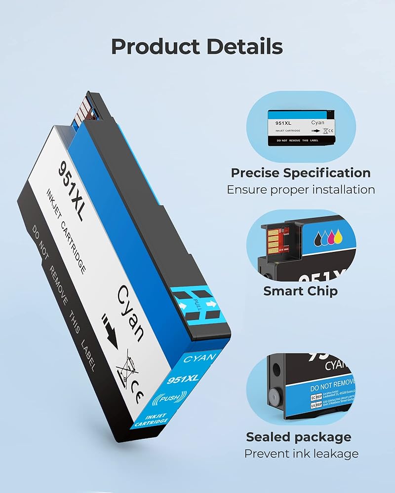 📇High Yield 950XL 951XL Ink Cartridges: 2300 pages per cartridge in black, 700 pages per cartridge in cyan, magenta, yellow