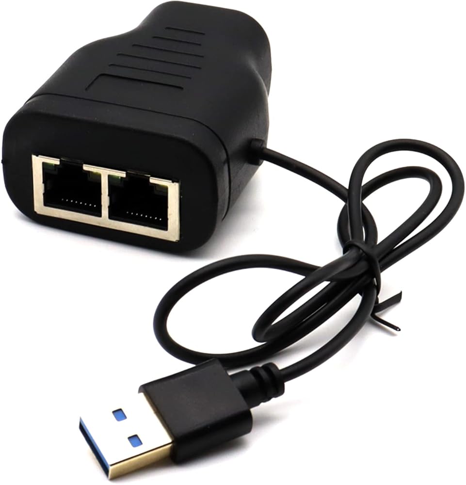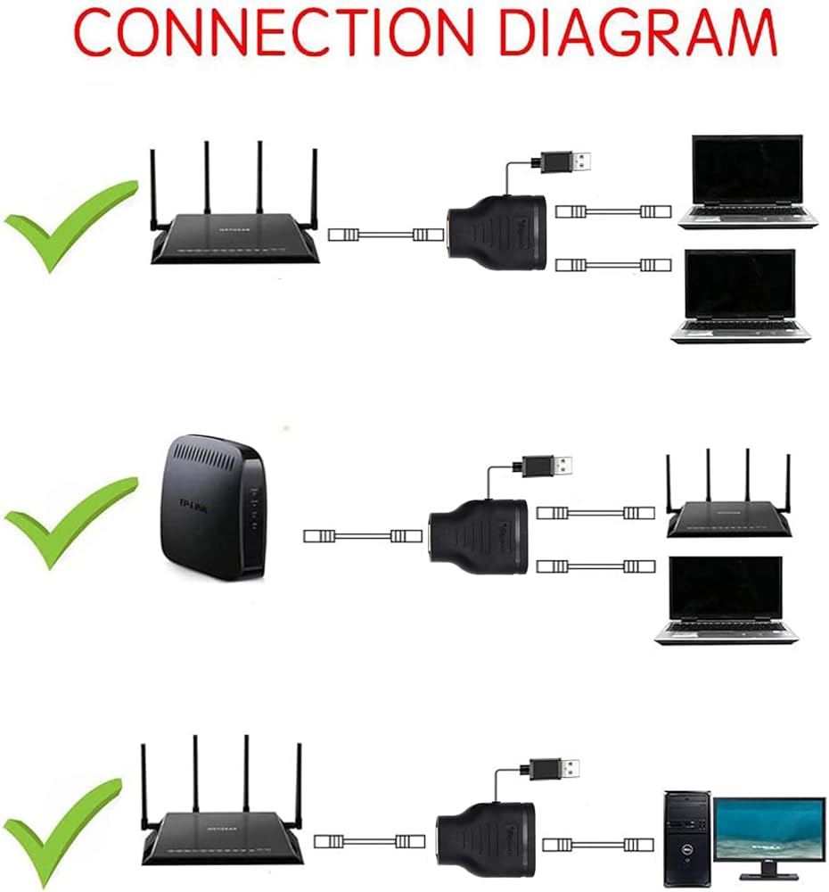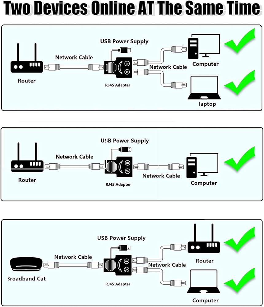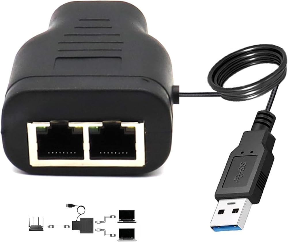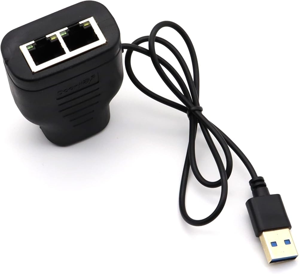 RJ45 Ethernet Splitter, AWADUO 1 to 2 Ethernet Extender Connecter USB to RJ45 Port with USB Power Cable 8P8C Extender Plug LAN Couple for Cat5 Cat5e Cat6 Cat6e Cat7