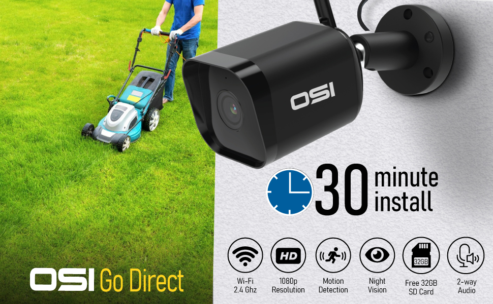 【1080P HD & 130° Wide Angle & Night Vision】OSI Smart outdoor security bullet camera is equipped with 2.1 Megapixel HD lens and 130° Wide Angle, which delivers crystal clear & smooth video day & night, protect your home wherever you are. IR night vision up to 32 ft. for extreme low light coverage, ensuring your high-quality view of your home even in the dark.