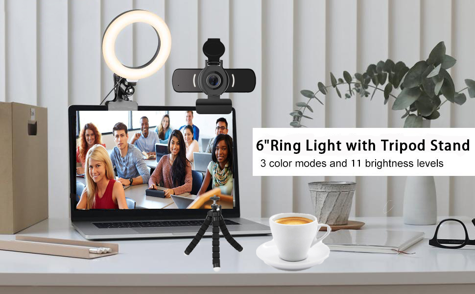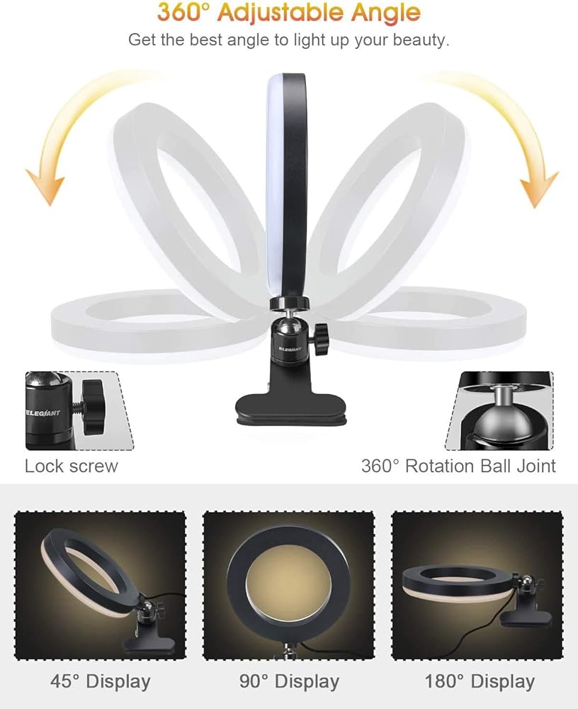 LarmTek LED Ring Light 6" with Tripod Stand for Video conferencing, 3 Dimmable,11-Level Brightness & 360° Angle Adjustment Desk Makeup Ring Light for Makeup Live Stream, YouTube Videos,TIK Tok Live