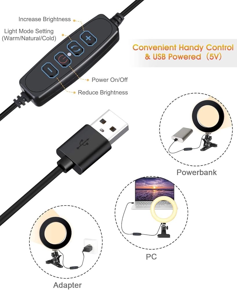 【USB Powered and After-sale Sevice】Selfie ring light works with most devices supporting USB port, such as laptop, PC, power bank, USB charger, AC adapter, etc. If you have any problems, contact us anytime we will always be here to help you.