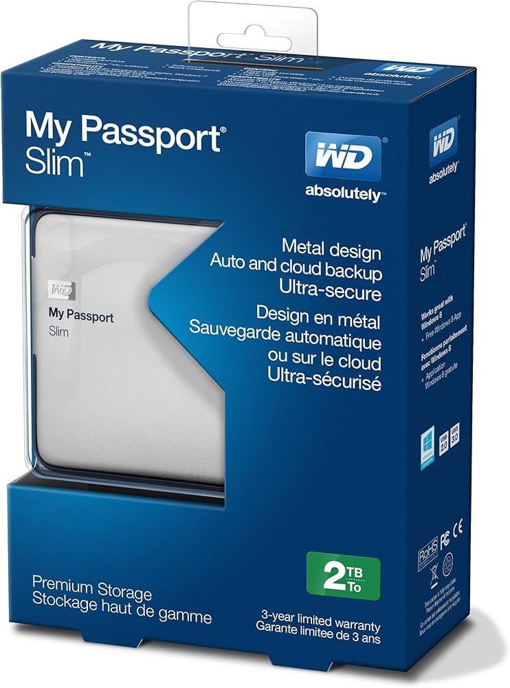Works great with Windows 8 - WD's Windows 8 app makes it easy to discover the digital media stored on your My Passport Slim drive with your Windows 8 computer. Your content is automatically displayed and organized so you can easily locate and enjoy your photos, videos and music.