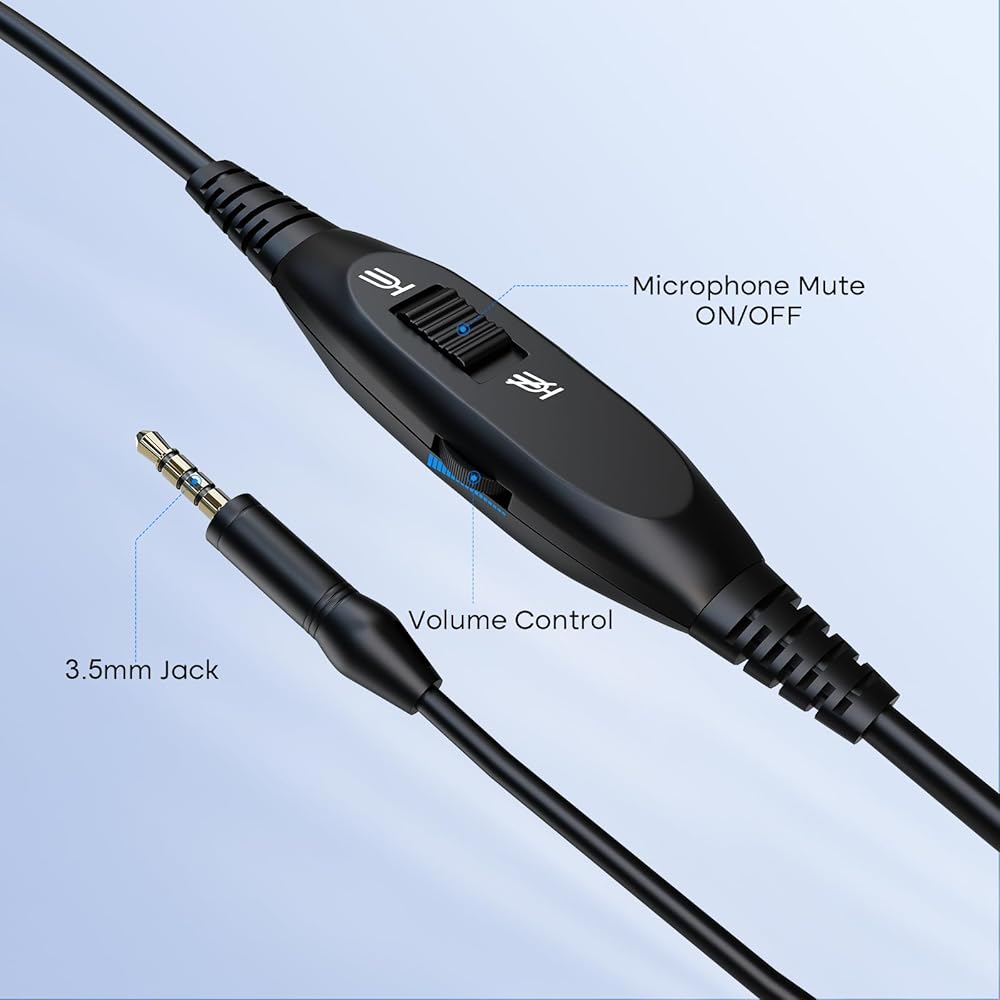 Comfortable Design: This wired headphone with microphone features a comfortable design that allows for extended use. The lightweight and adjustable headband and microphone ensure a perfect fit, while the soft ear cushions help reduce fatigue and strain.