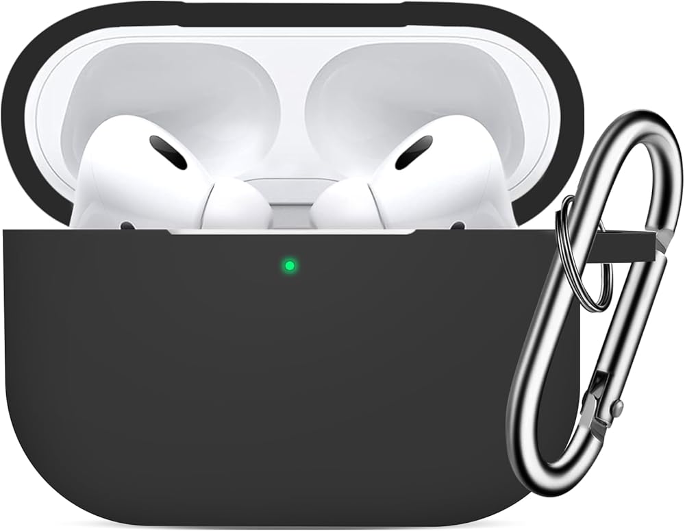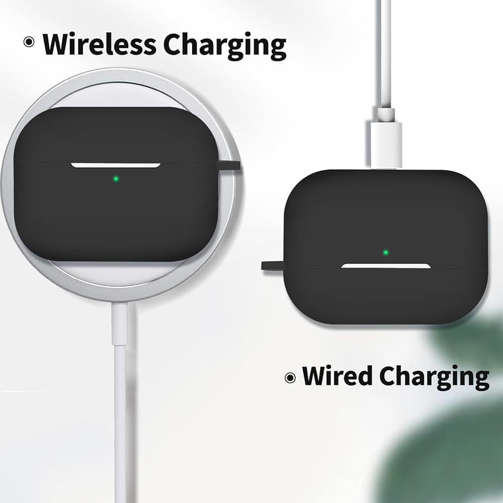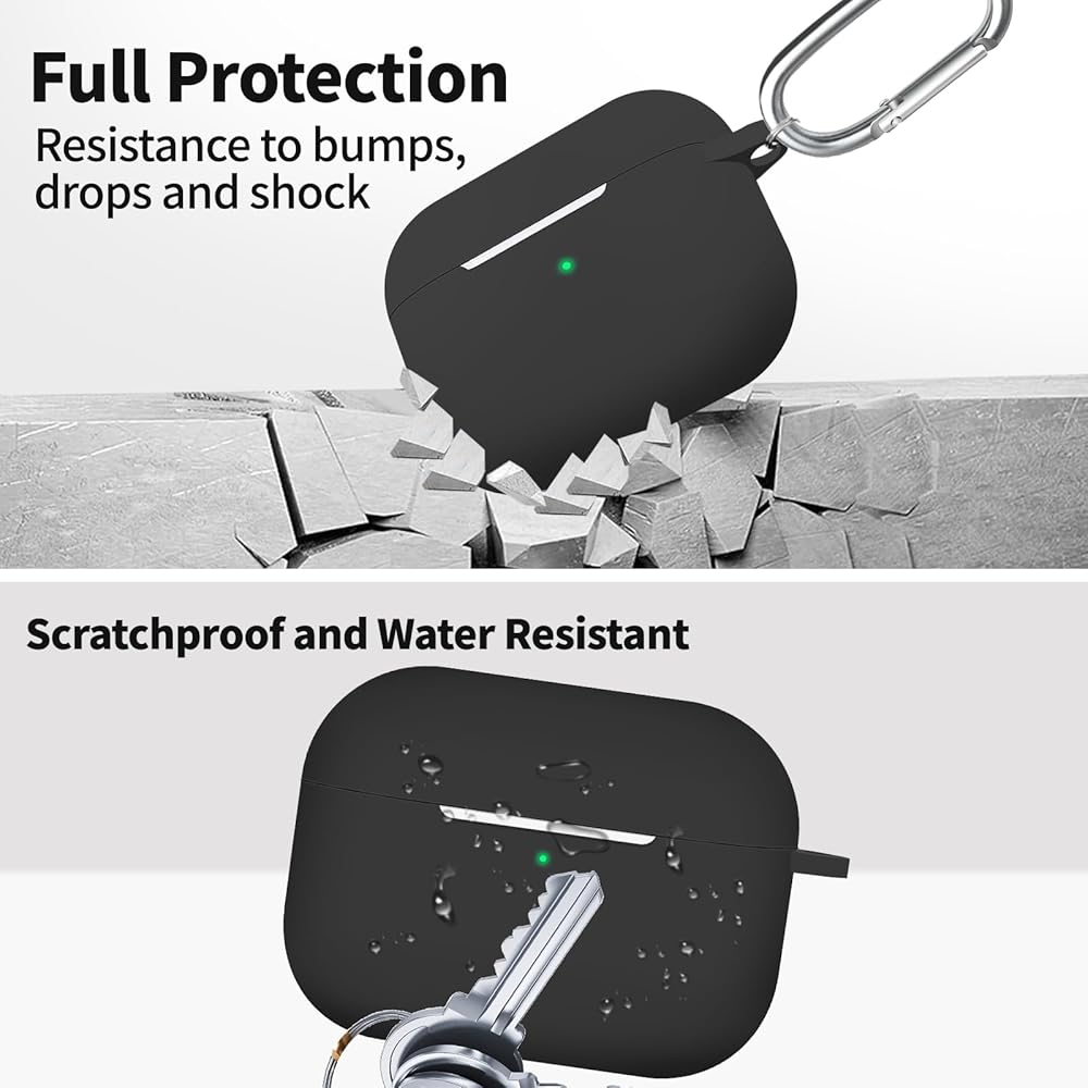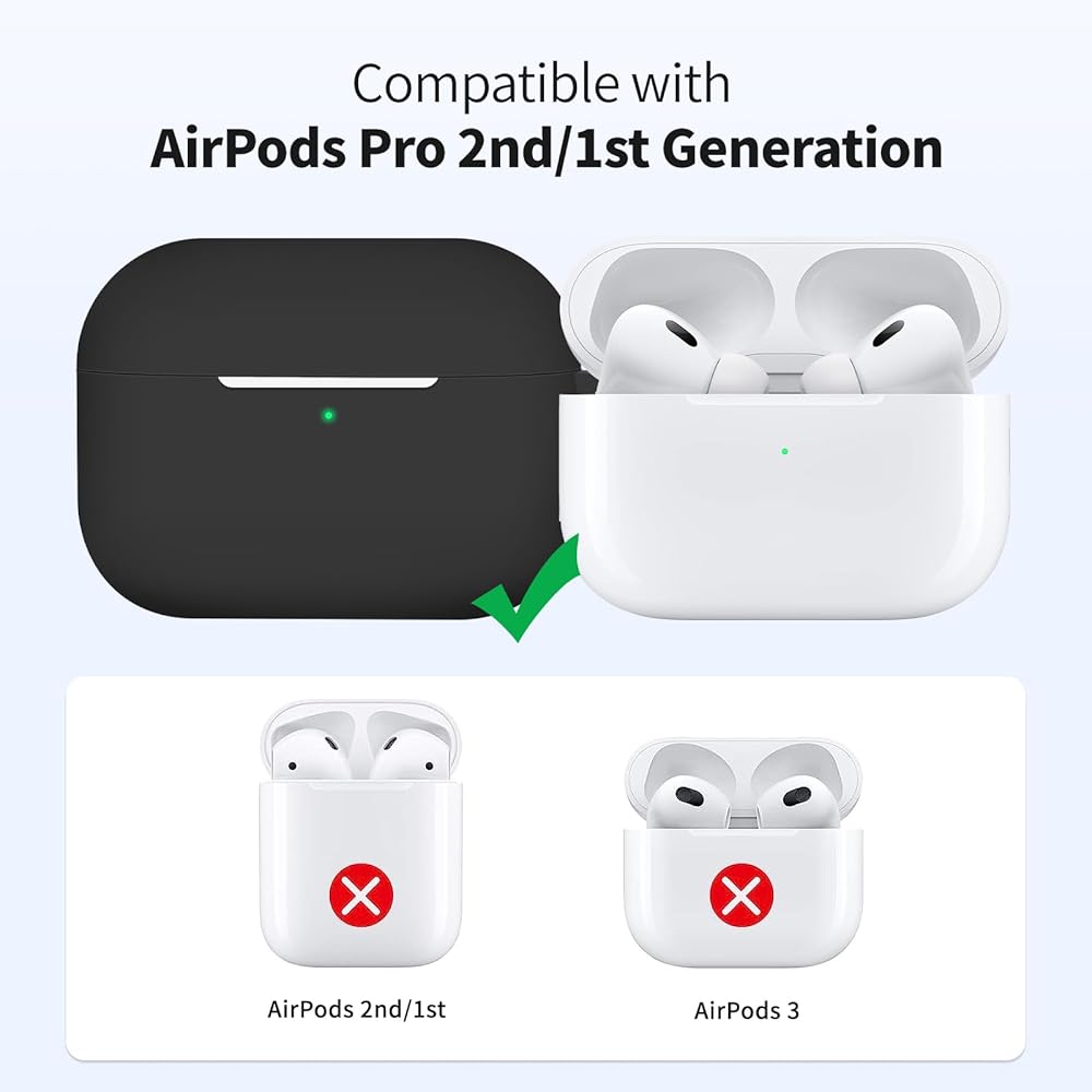 Compatible with Airpods Pro 2 Case Cover with Keychain, Soft Silicone Skin Full Protective Cover for Apple AirPods Pro Case 2nd 1st Generation Case, Front LED Visible (Black)