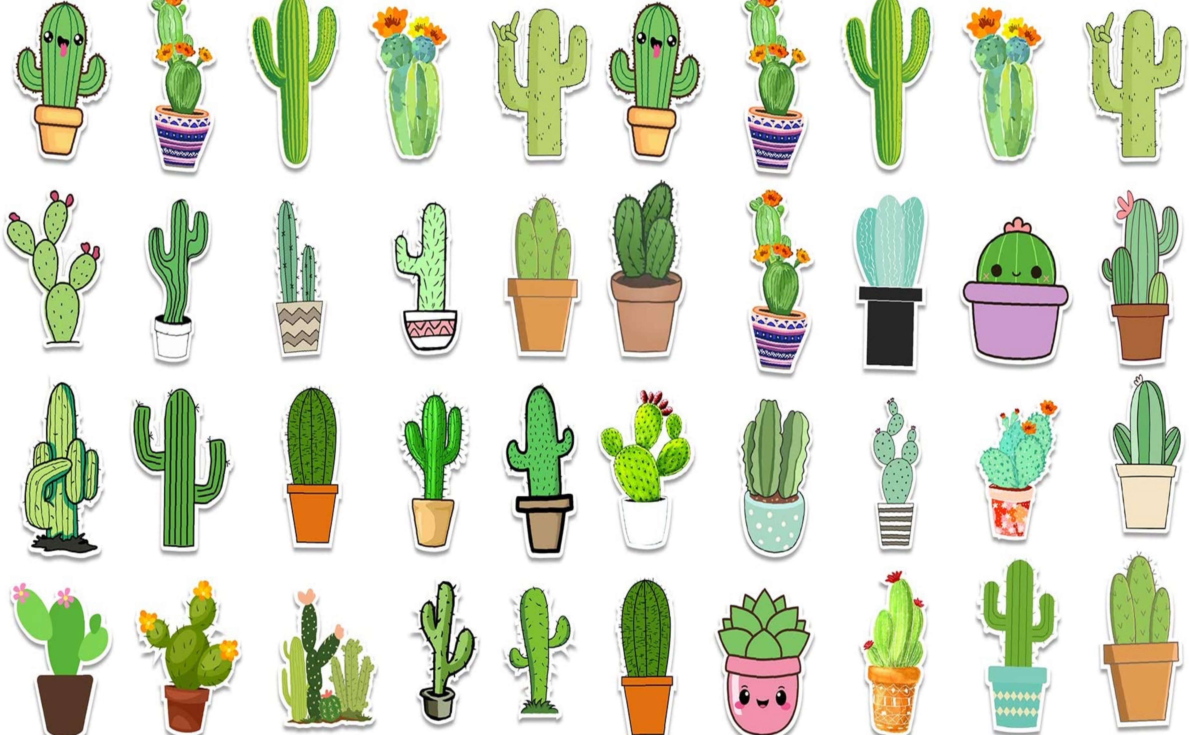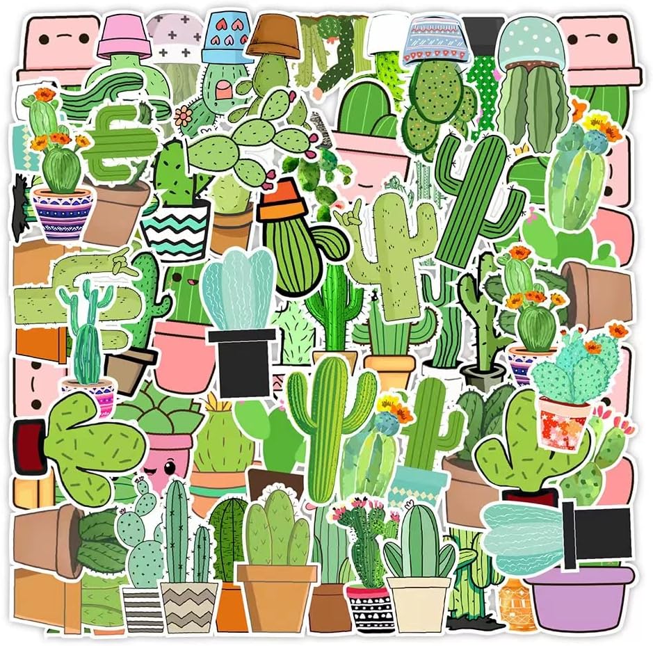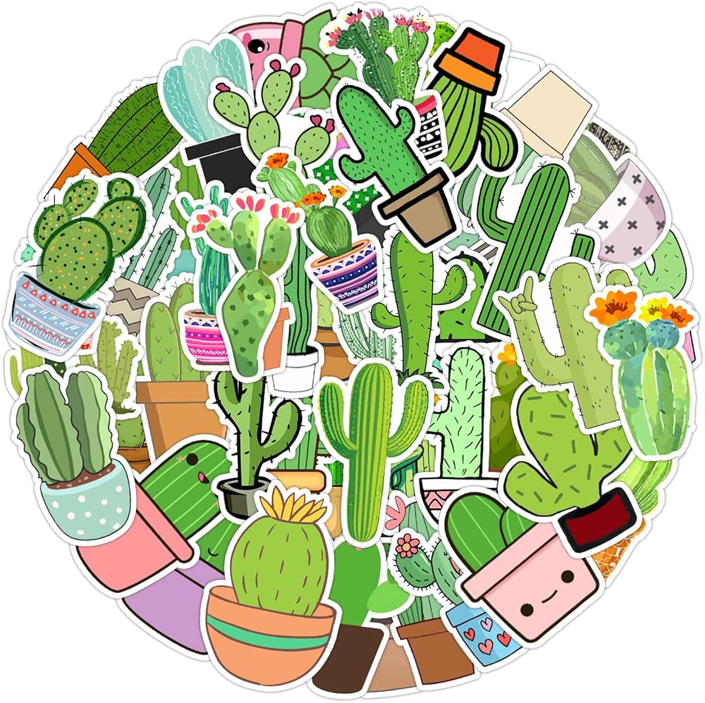 Stickers for Water Bottles, 50Pcs Waterproof Vinyl Cactus Stickers Packs for Laptop, Skateboard, Hydro Flask, Computer, Phone, Scrapbook, Cute Aesthetic Stickers for Girls Women