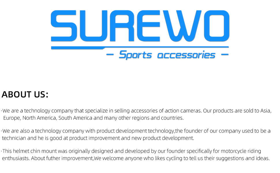 ★ MOTORCYCLE HELMET CHIN MOUNT:Multi-Function helmet mounts kit,is our own specific product for biker. We are a technology company with a registered brand and protected by U.S. laws. Our products are sold to many countries and regions around the world.