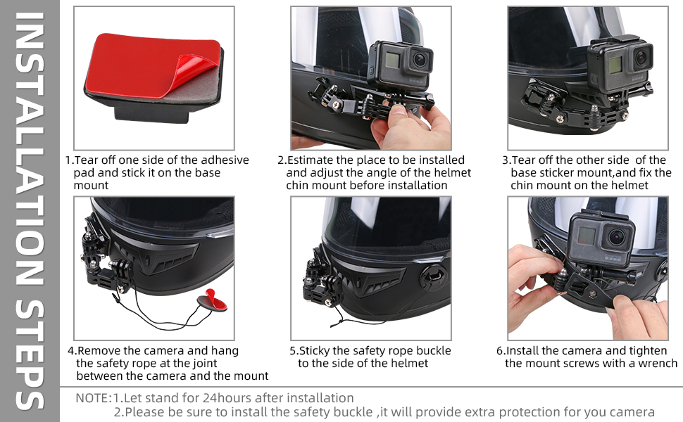 ★ ADHESIVE MOUNTS & STICKY PADS:Adhesive mounts divided into curved and flat mounts,you can use according to circumstances.Industrial strength waterproof sticky pads,help you install your camera on the helmet.NOTE:After the first installation, please let the stand stand for 24 hours before using.
