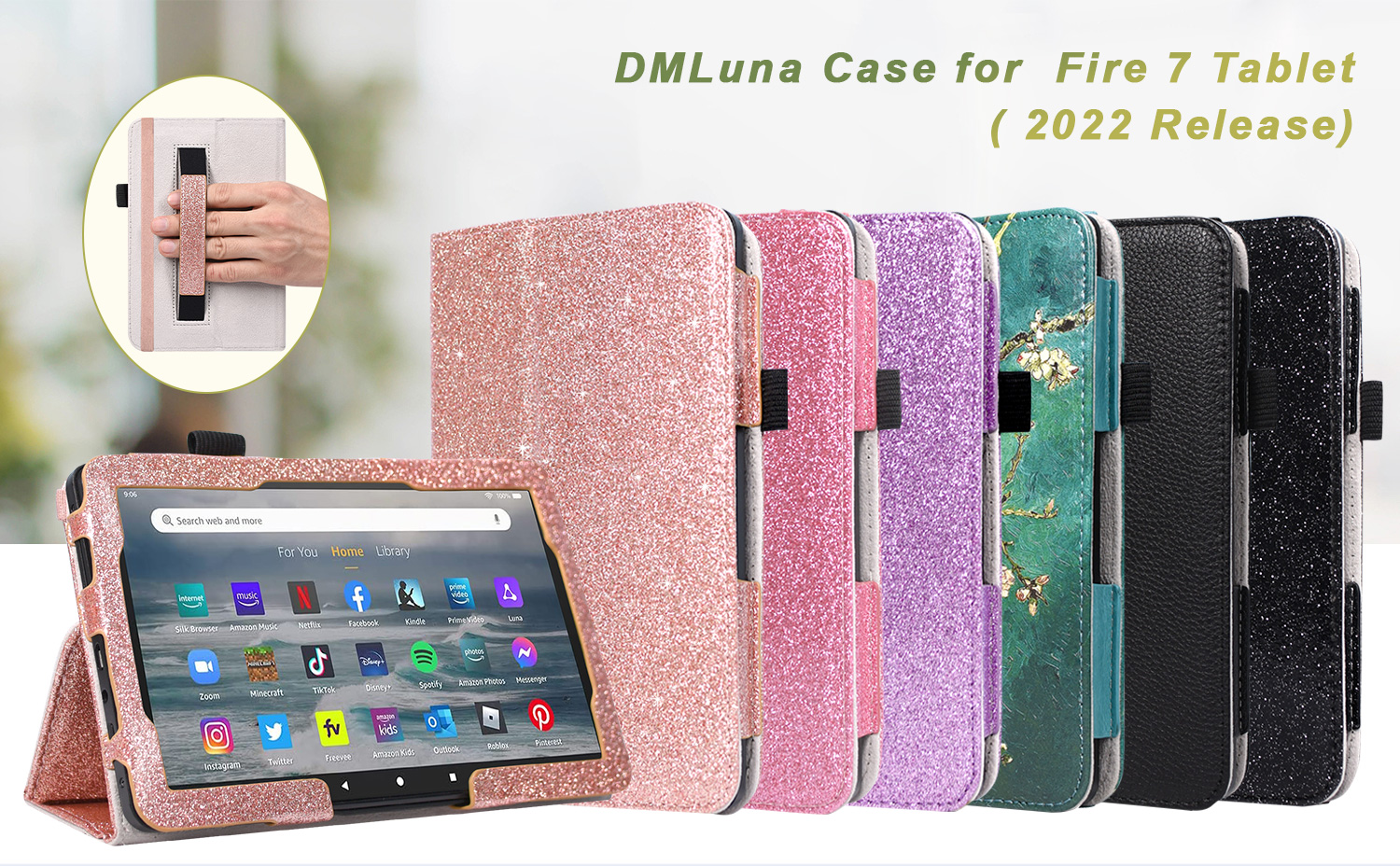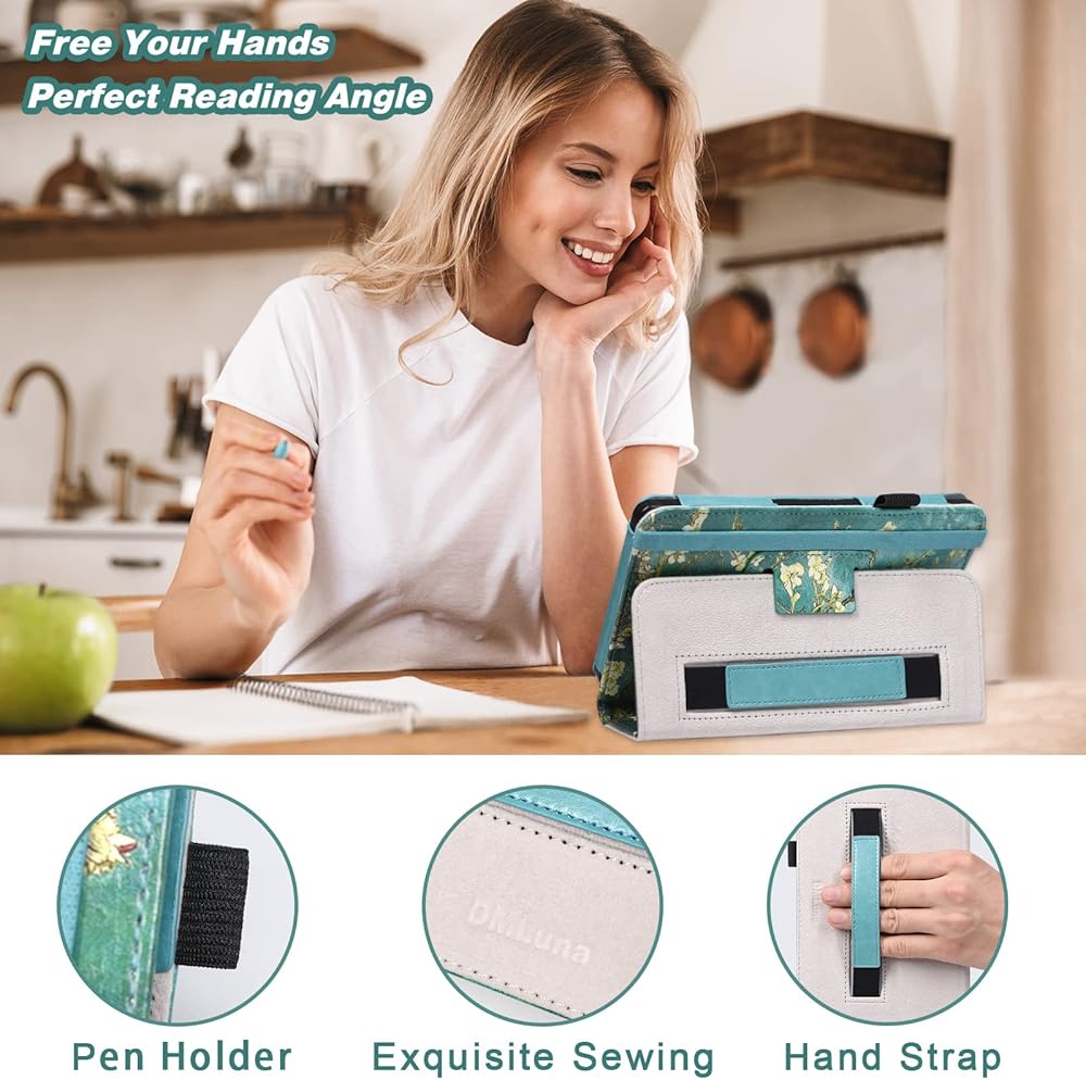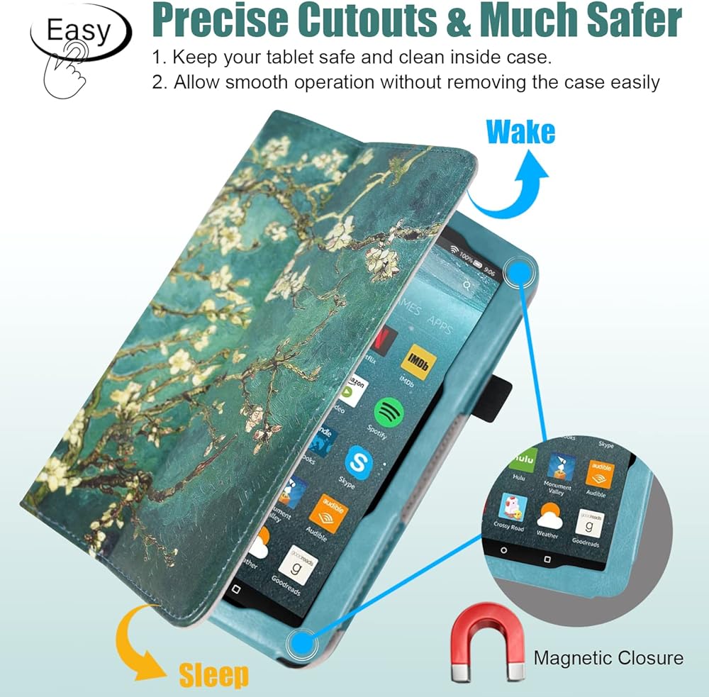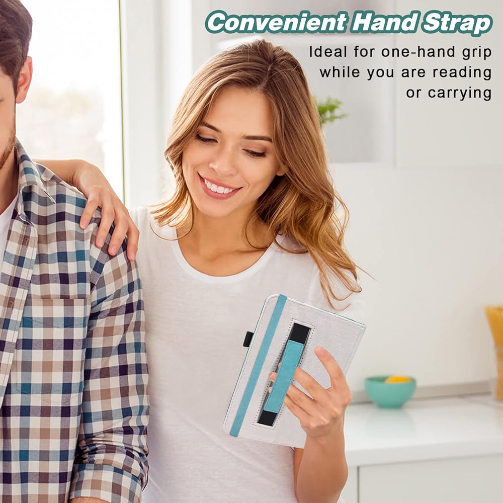 CONVENIENT FEATURES: Our Fire 7 tablet case has a magnetic strip built-in, it allows your tablet to automatically wake up or go to sleep when the lid is opened and closed. The built-in flip stand on our tablet cover makes watching videos and typing more comfortable. This Fire 7 tablet case 2022 stand will keep your Fire tablet 7 safe and stable on any surface, making it perfect to use on the train and the airplane. The Kindle covers and cases have a hand strap on the back so that you can hold it easily with a single hand. You can securely store your stylus, pen, or pencil in a pen holder on the side of the case for Fire 7 tablet!
