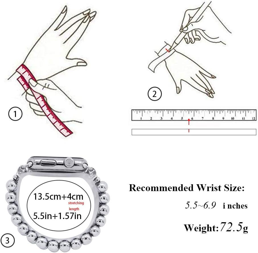 1.Please measure your wrist before purchase, the recommended wrist size of this band is between 5.5 inches to 6.9 inches. For larger or smaller wrists it is possible too tighten or loosen the elastic cords. However, according to our statistics, this stretch cord kind will fit for almost all of female wrists.