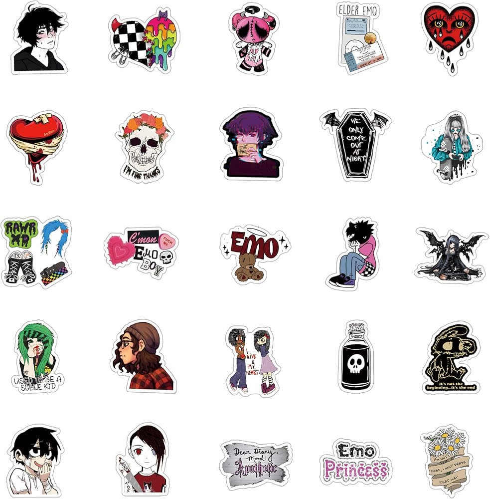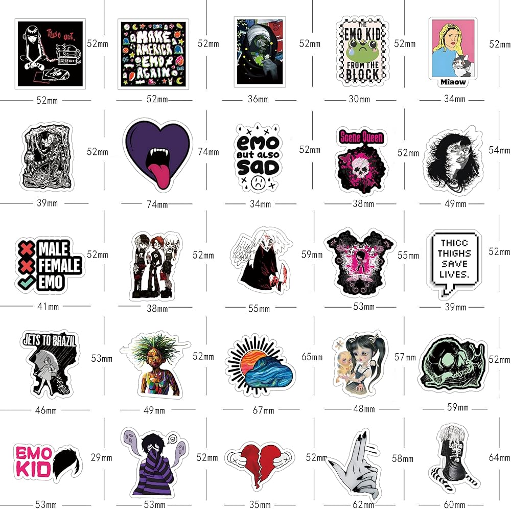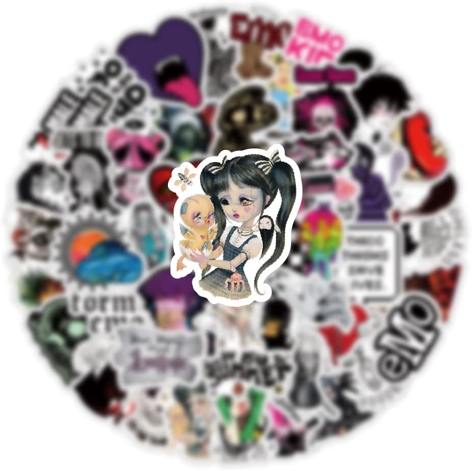 63Pcs Emo Stickers Pack, Depressed Decadent Mood Aesthetic Waterproof Vinyl Sticker Decals for Water Bottle,Skateboard,Laptop,Phone,Journaling,Scrapbooking | Gifts for Adults Teens Kids (Emo)