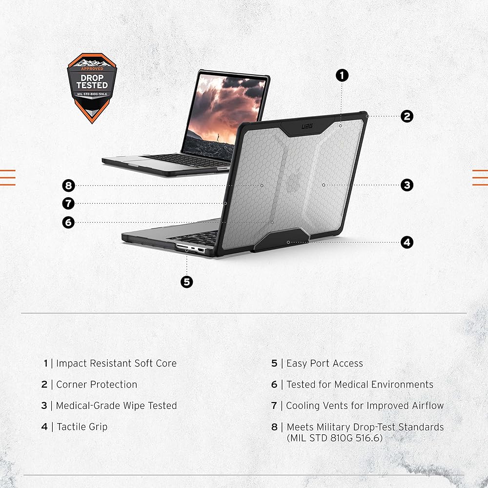 Our MacBook Pro 14 inch case is a translucent with a modern honeycomb look constructed with an armor shell and impact resistant soft core for ultimate protection and air-soft bumpers for added extra corner protection.